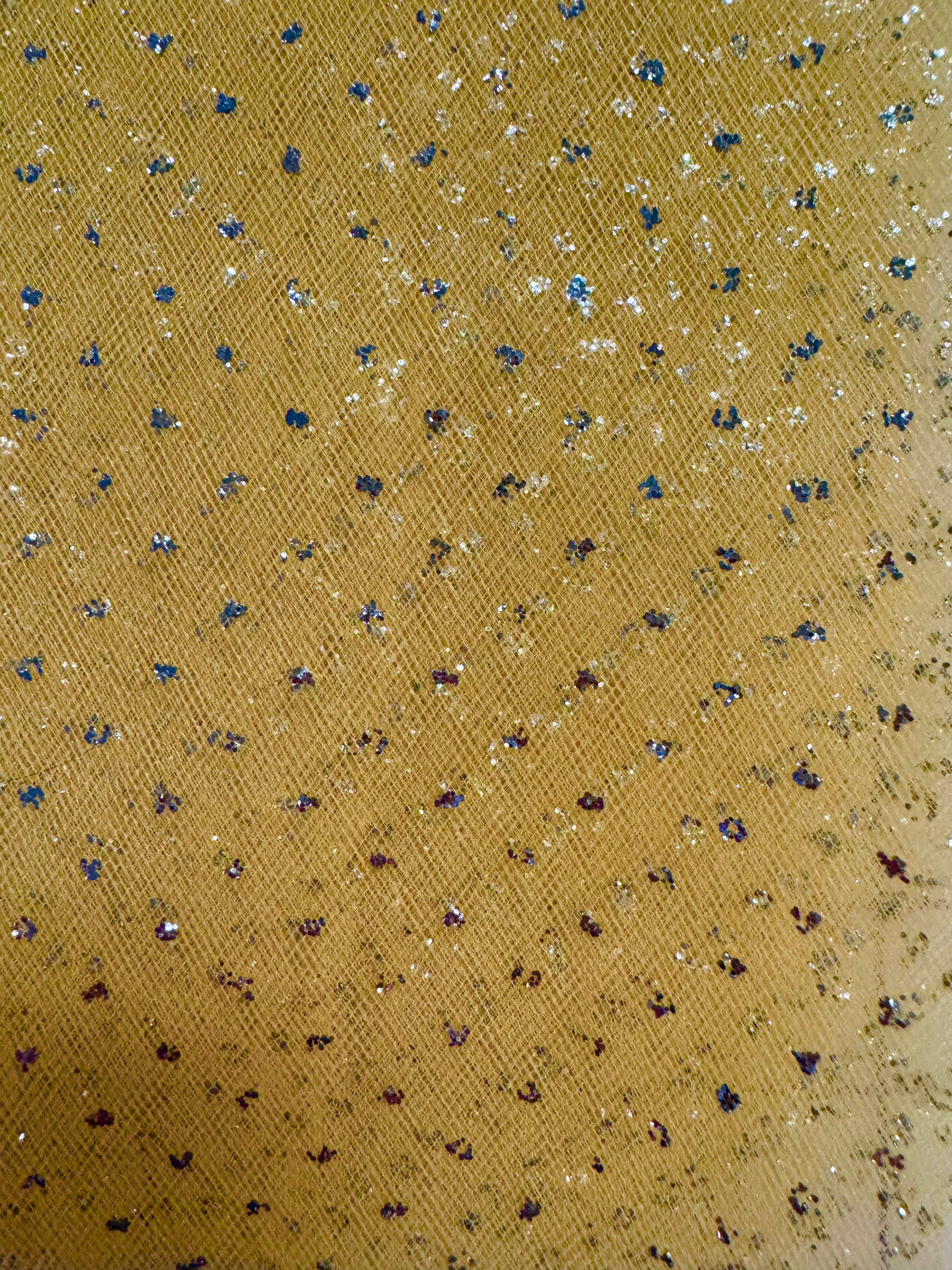 Priced per yard. Vintage Gold/Silver, enhanced sparkle tulle. 54-inches wide. A beautiful, yellow/gold shade!