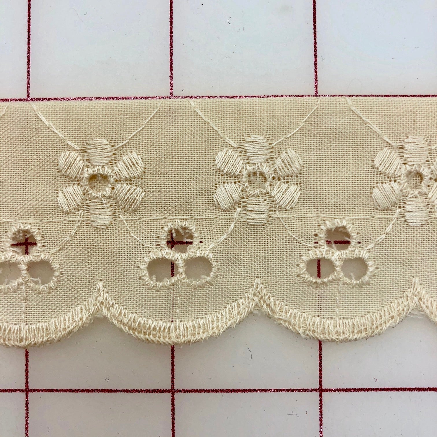 Priced per pack. Beautiful, delicate, eyelet trims. Two pieces - a 1.5-yard piece and a 3.75-yard piece, for a total of 5.25 yards. Perfect for embellishing girls' pantaloons for the Nutcracker, and other ballet costumes. Cannot be re-ordered.