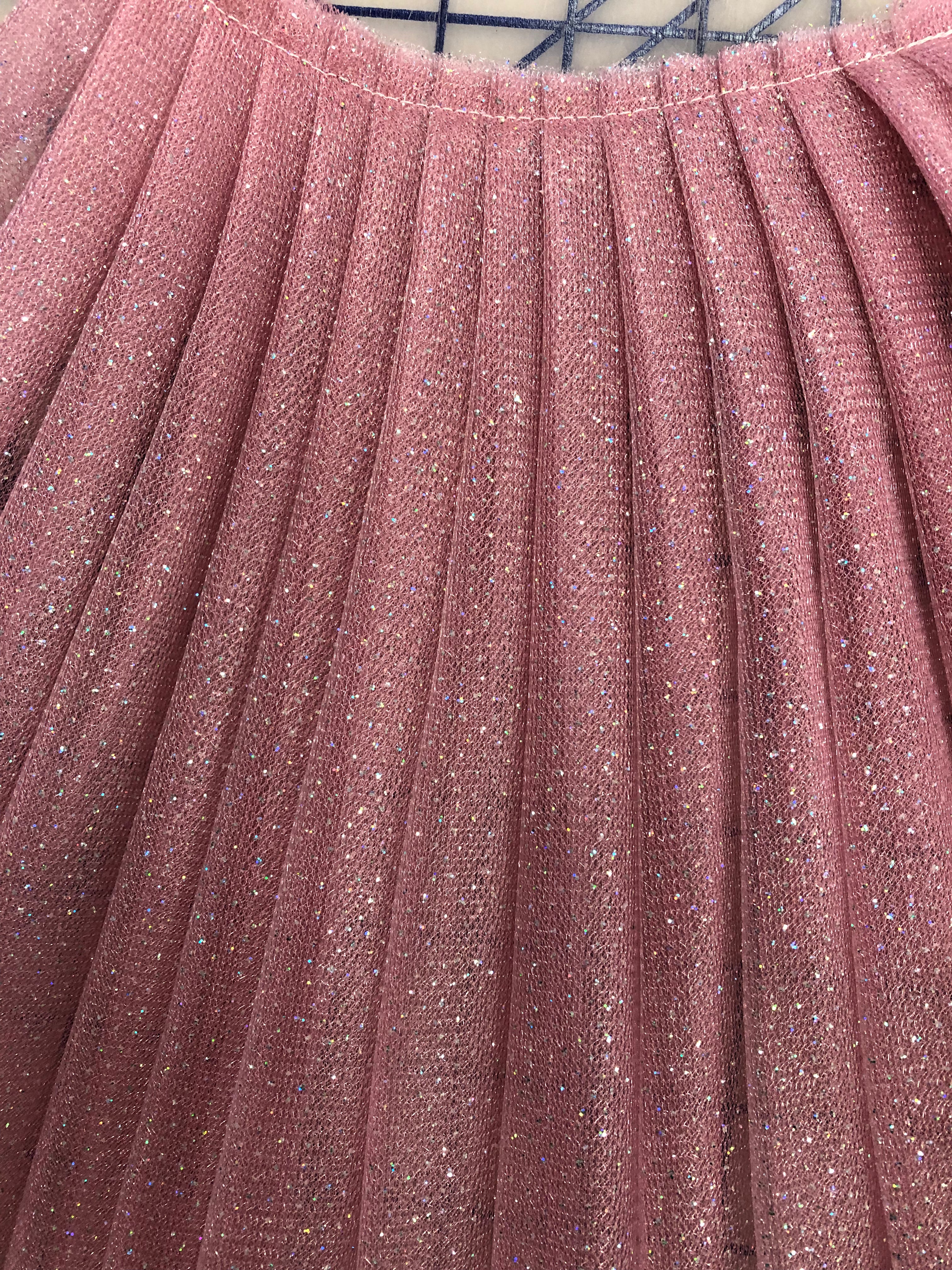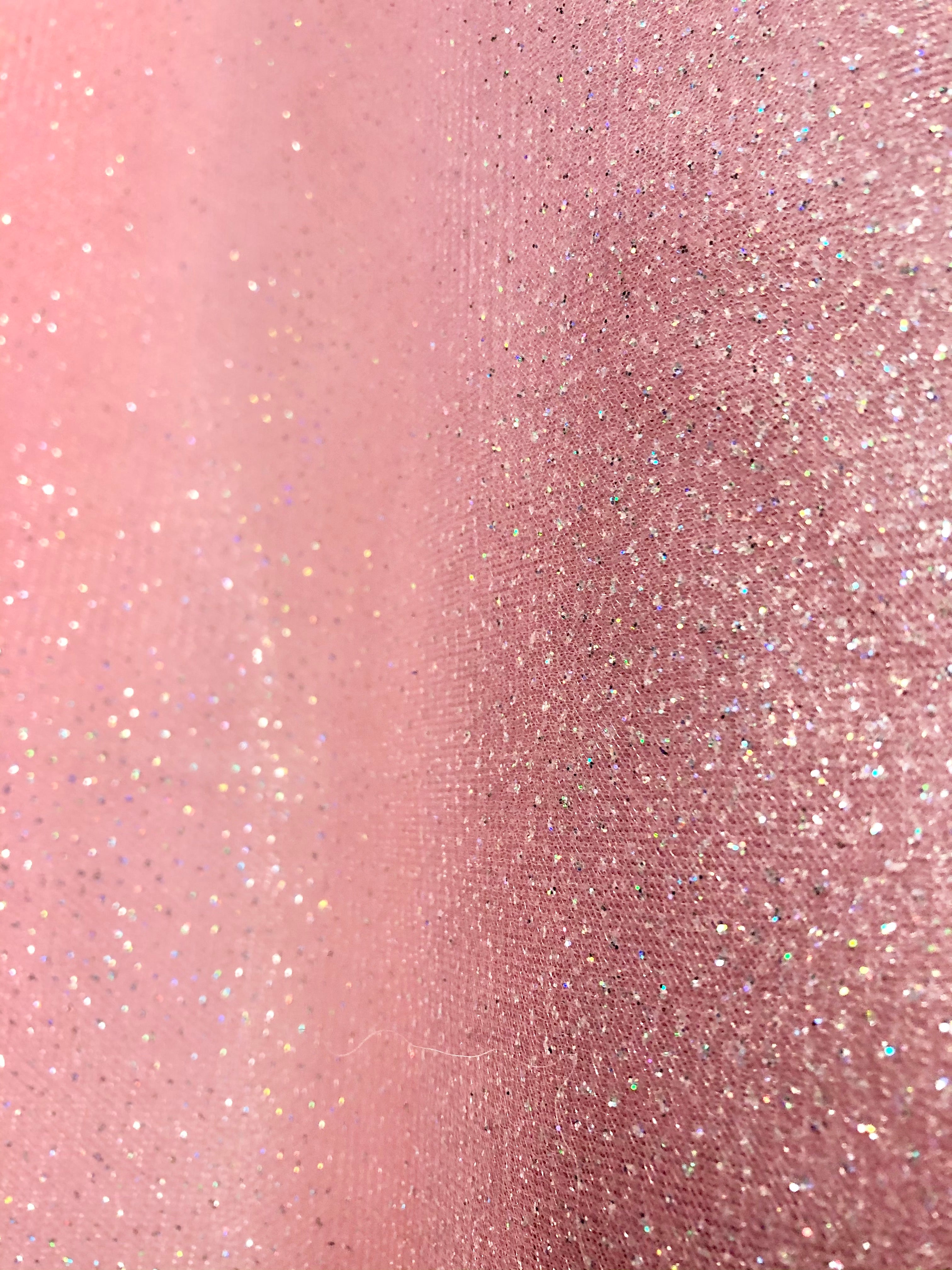 Priced per yard. Sparkly Dusty Rose nylon tulle. Soft, with some stretch across the width.Dusty Rose with silver iridescent sparkle dots that absolutely do not shed! Mix with rosette, ivory, Paris Pink, Dusty Rose, American Beauty, white, peach, or ballet pink tutu net or tulle for an added touch of sparkly elegance.