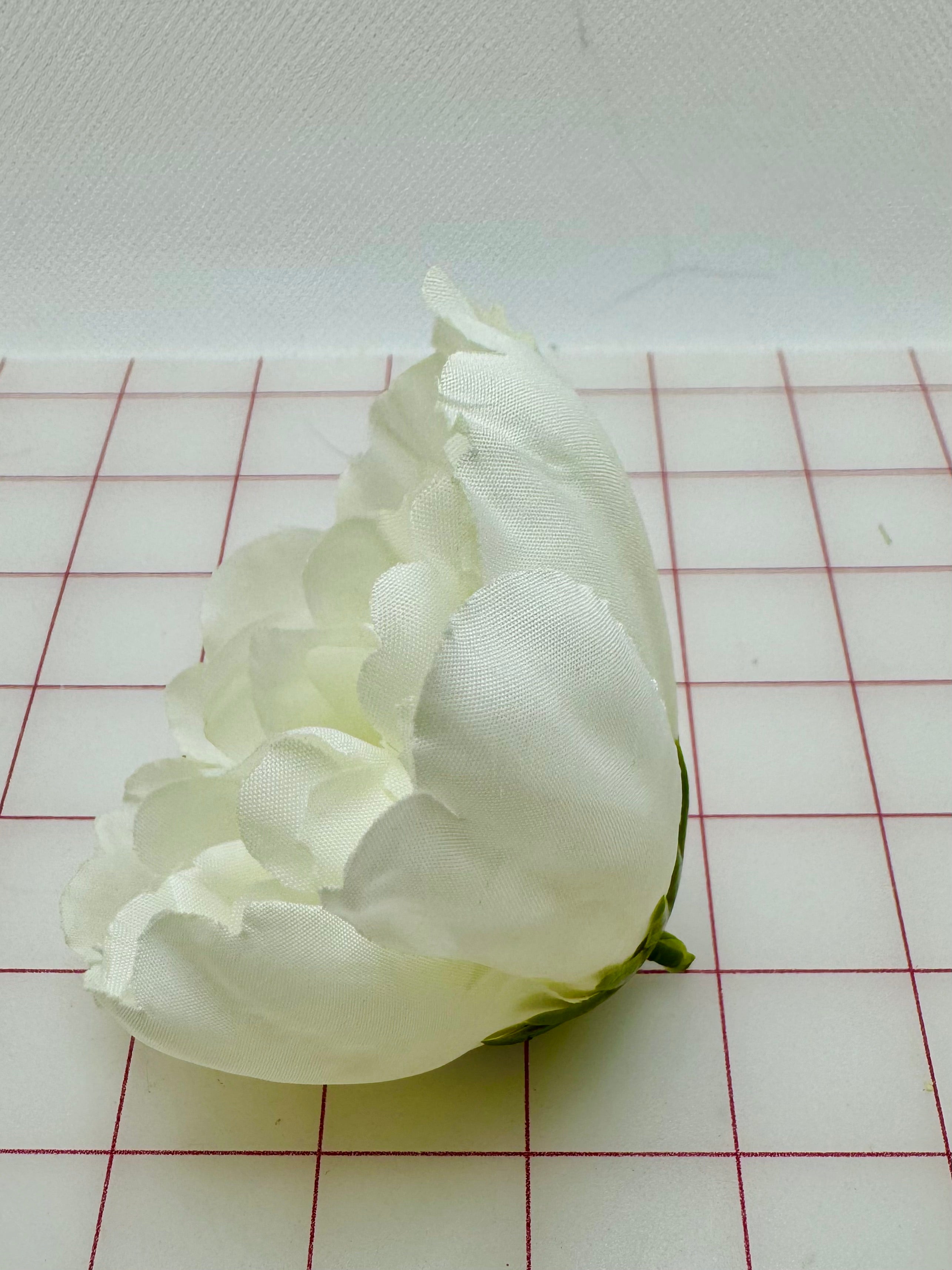 Priced per dozen flowers. Medium-size, pale ivory cream color. Can be pinned on to costumes, sewn on,and/or added to side-of-a-bun headpieces. Size: Approximately 3 to 4 inches.