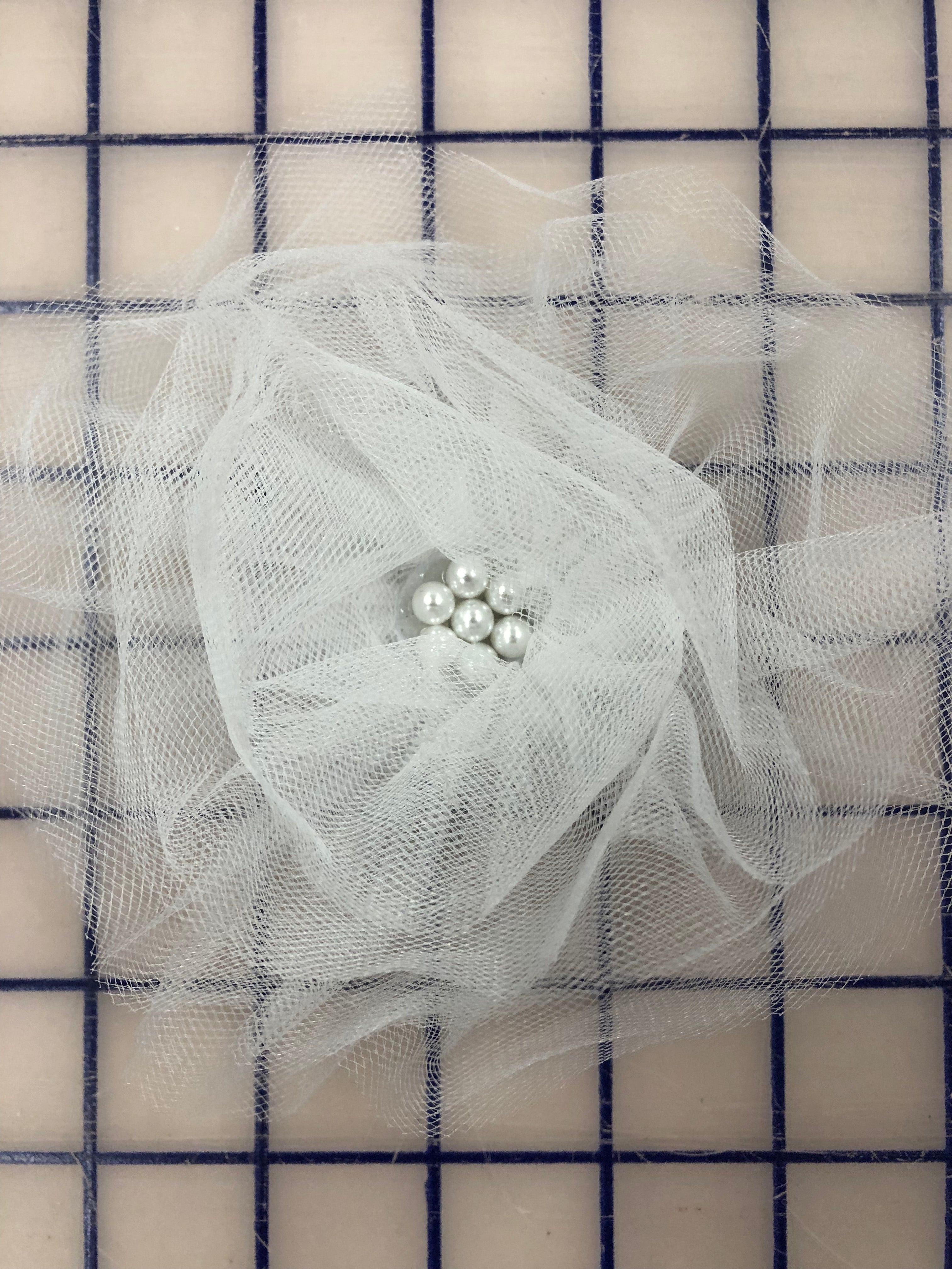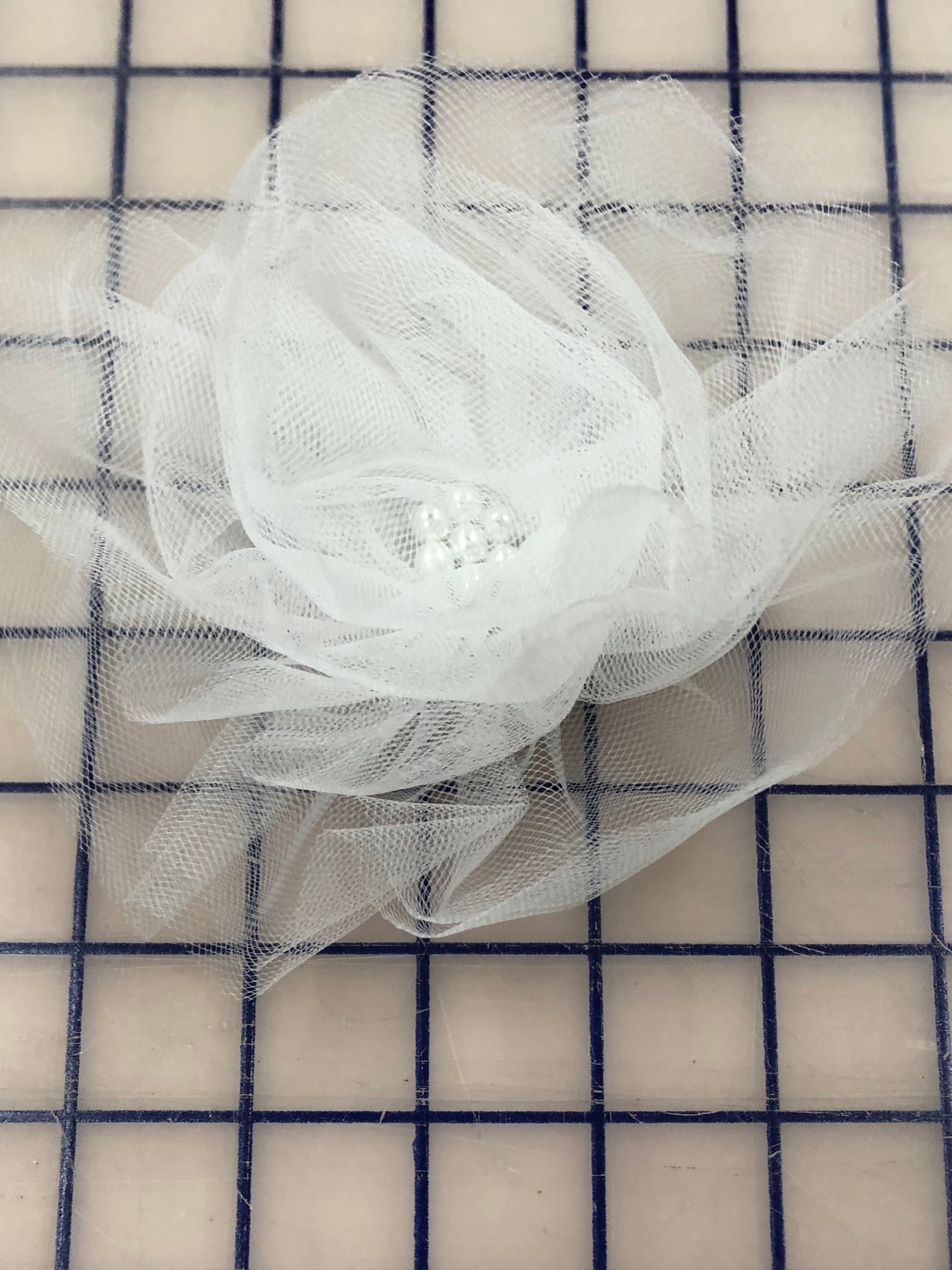 Priced per flower. Medium-size, white tulle flowers. Can be pinned on to a costume, sewn on,and/or added to a comb for a side-of-a-bun headpiece. Can be easily dyed. Size: Approximately 4.5 to 5 inches.
