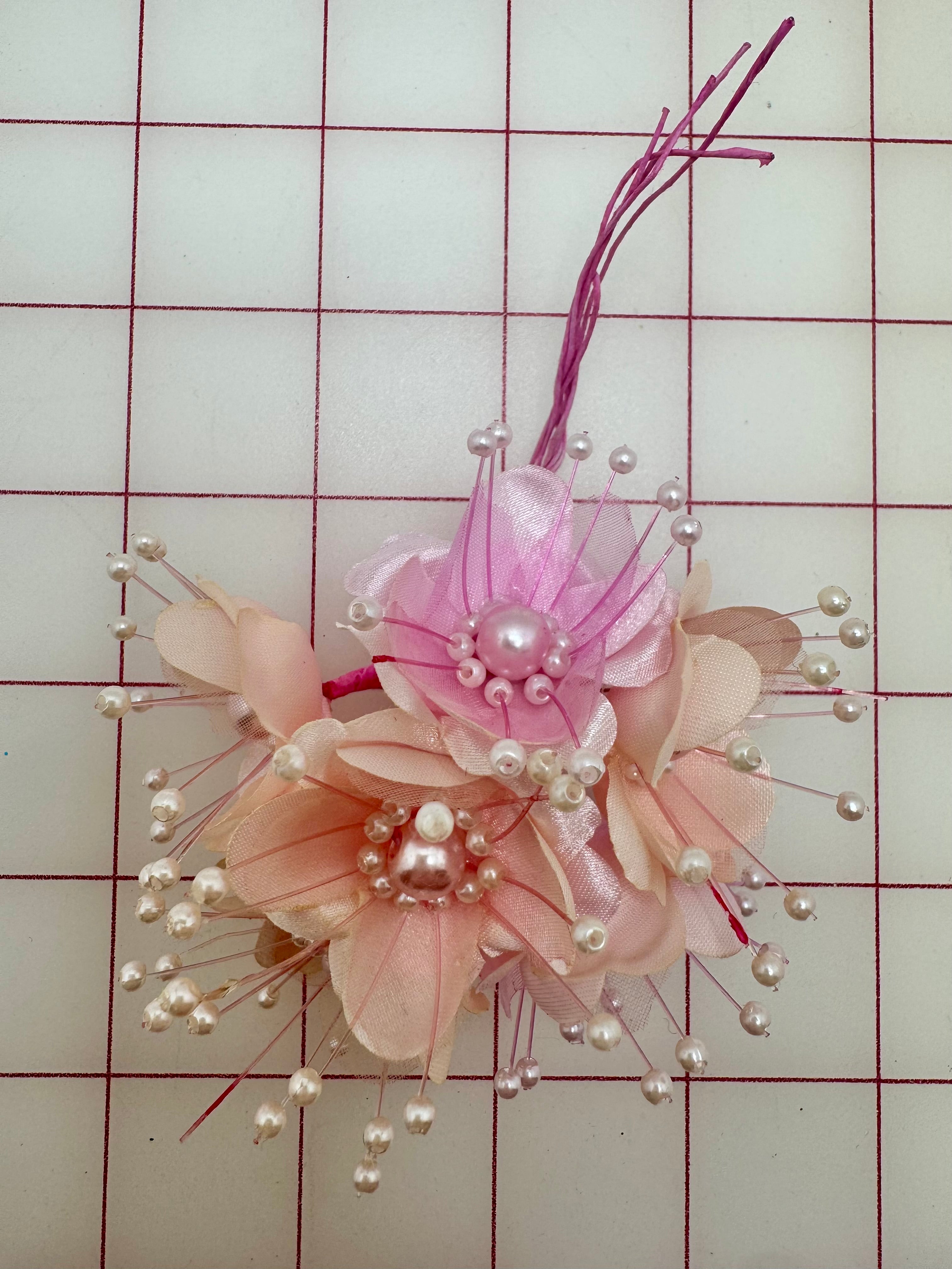 Priced per 6-flower bunch. 6 custom-dyed pink and peach flowers with little pearls.
