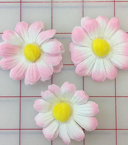 Priced per 3-pack. Pink and white petals with yellow center daisy flower.