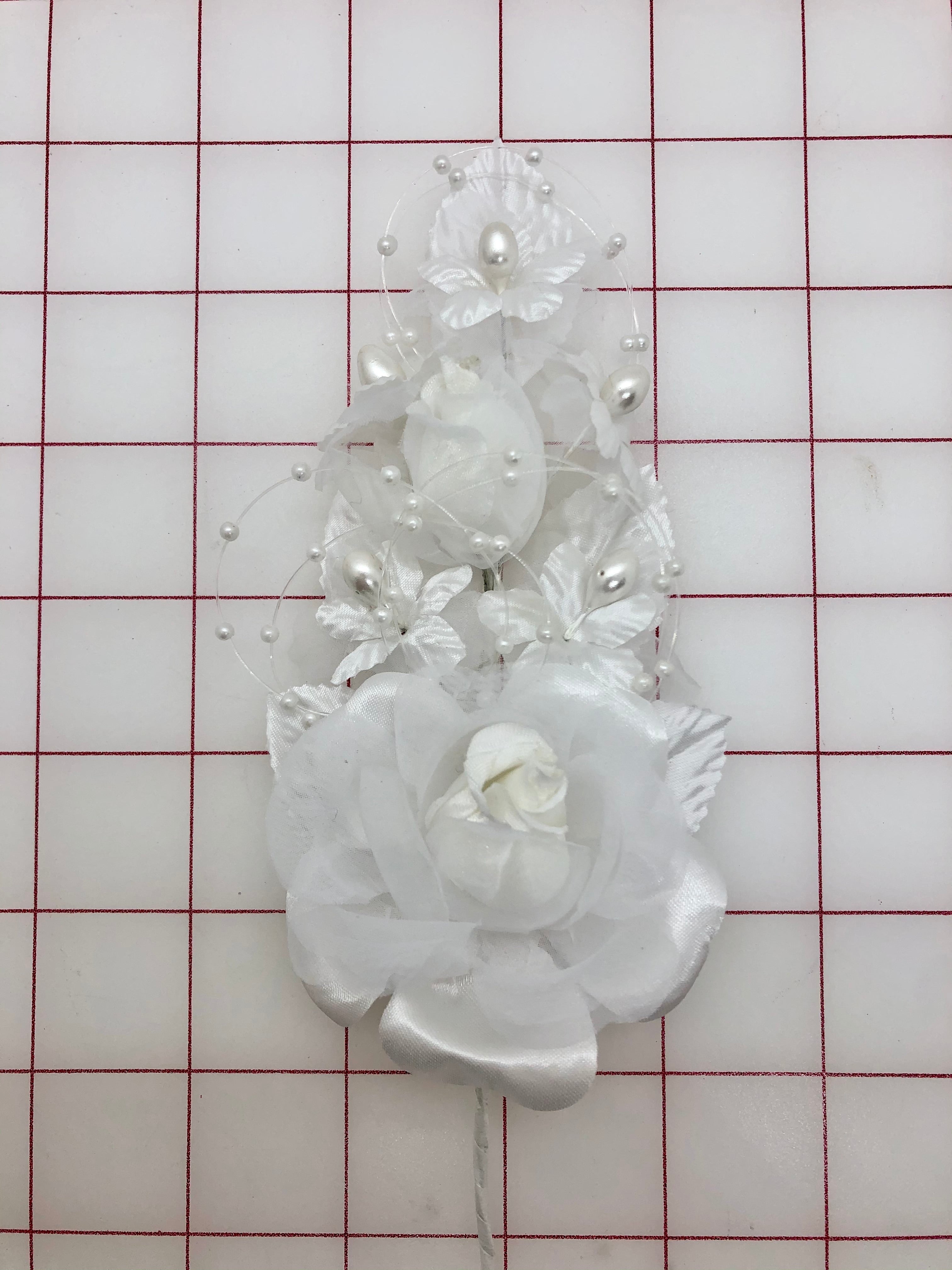 Priced per piece. Beautiful, white flower spray that makes the perfect side-of-the-bun headpiece. Can be used for many roles, from flowers to fairies.