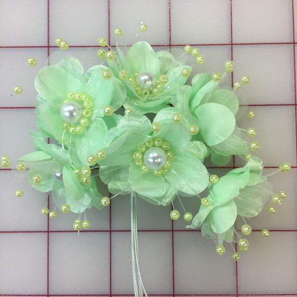 Priced per 6-flower bunch. Green flowers with little pearls. Perfect for quick headpieces and embellishment.