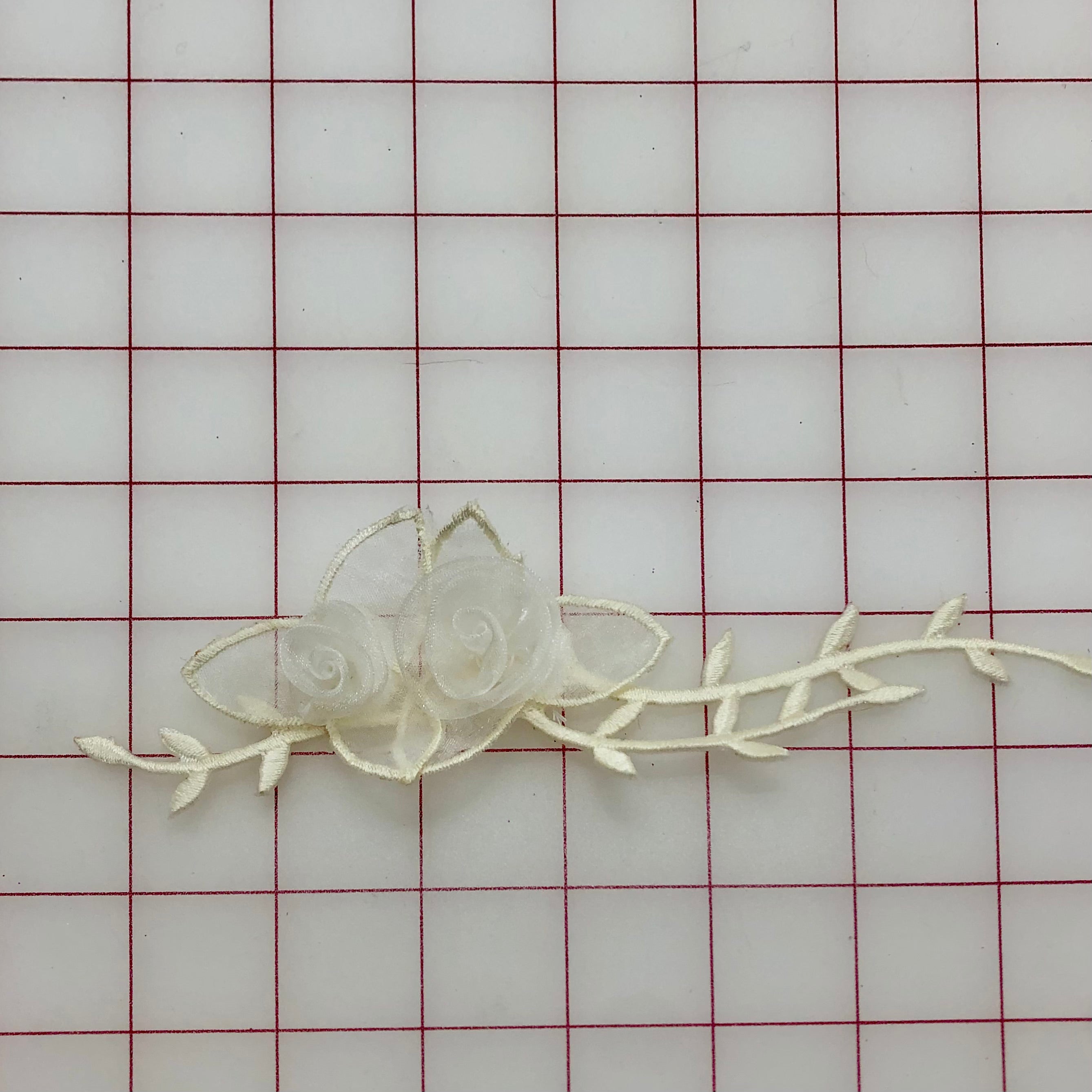 Priced per flower. 7-inch ivory organza flower, with vine. Iron-on.