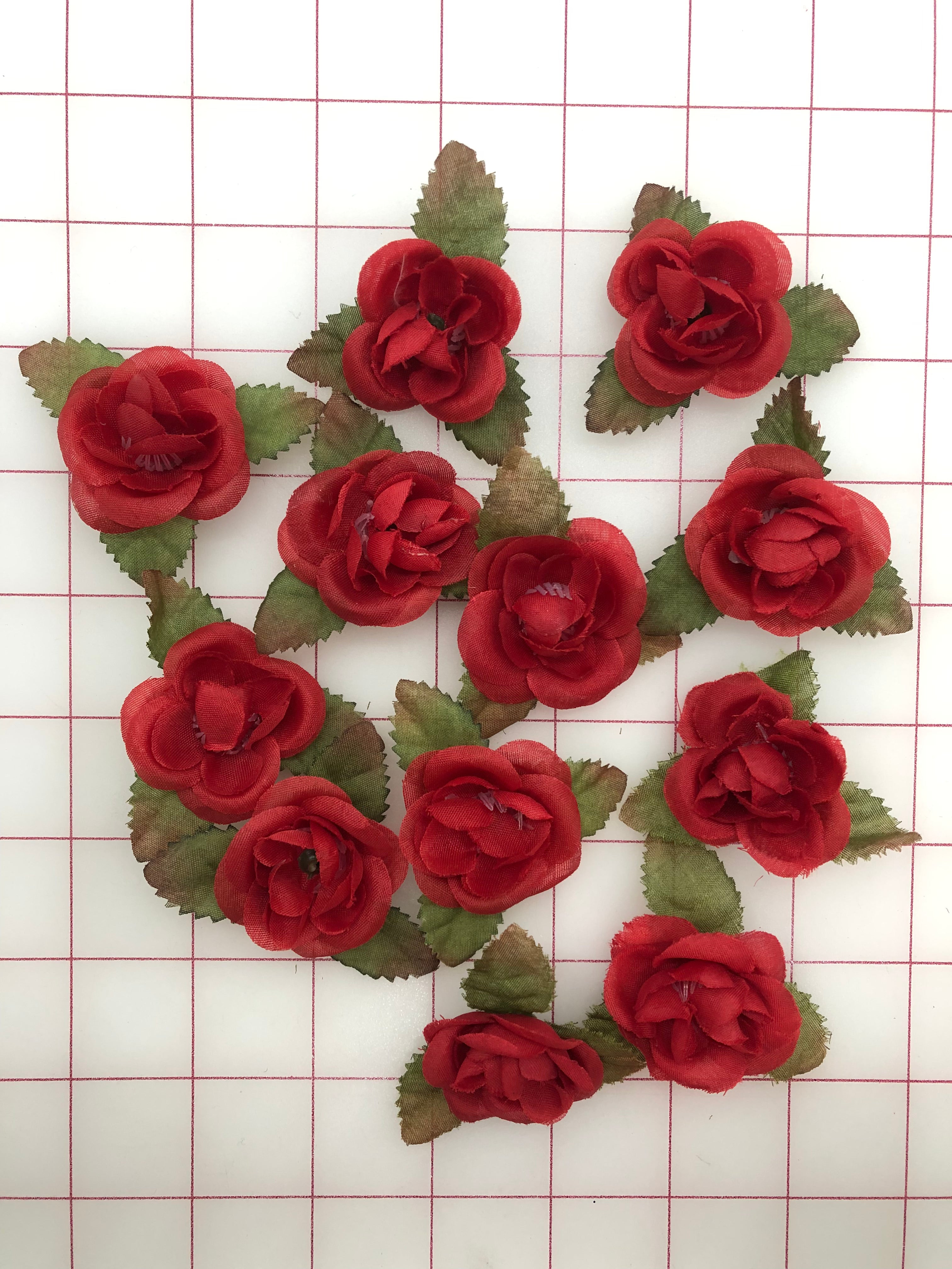 Priced per 12-Pack. Small roses, red. Perfect for embellishing headpieces, tutu plates and bodices, and many other costumes.