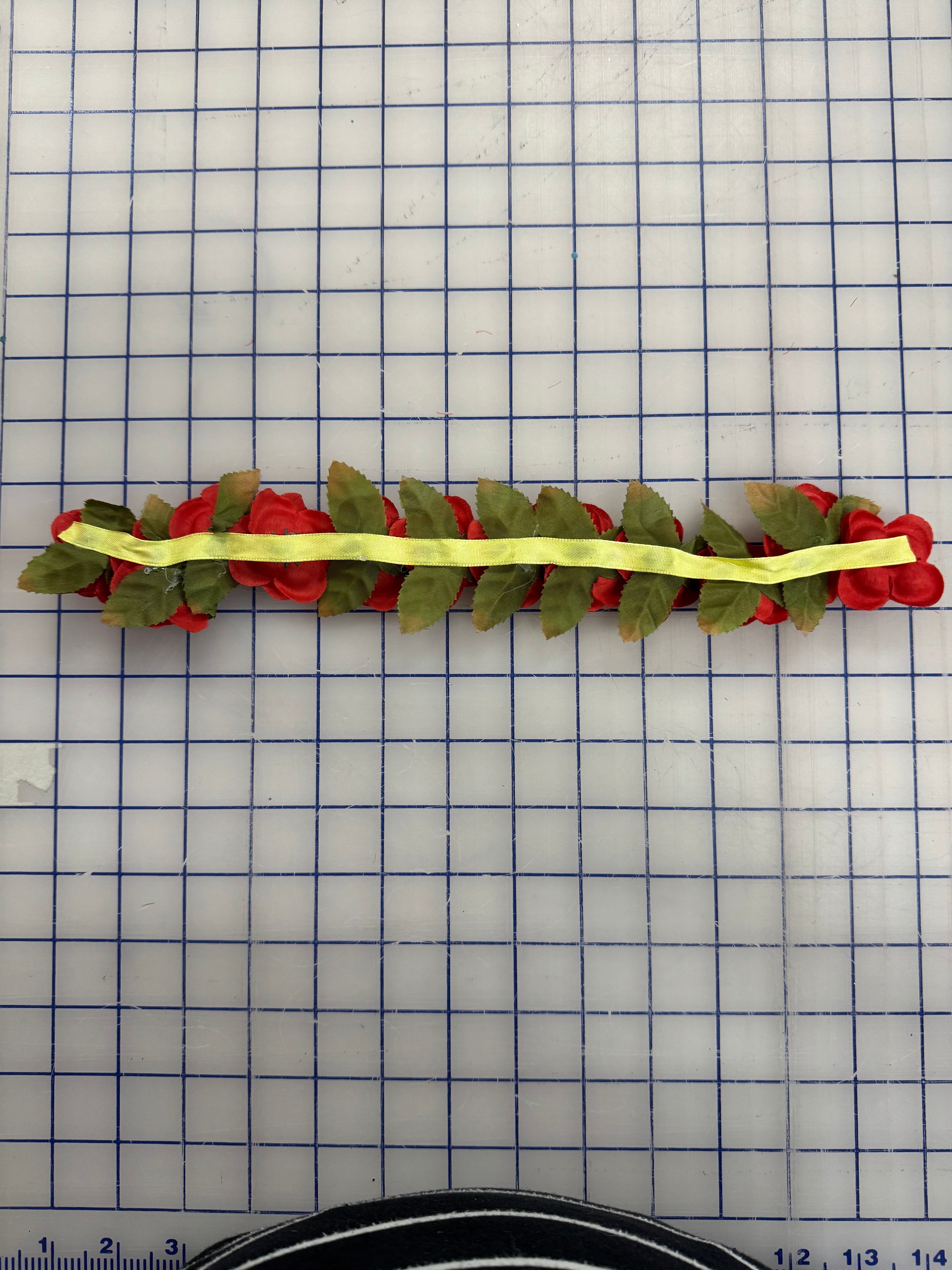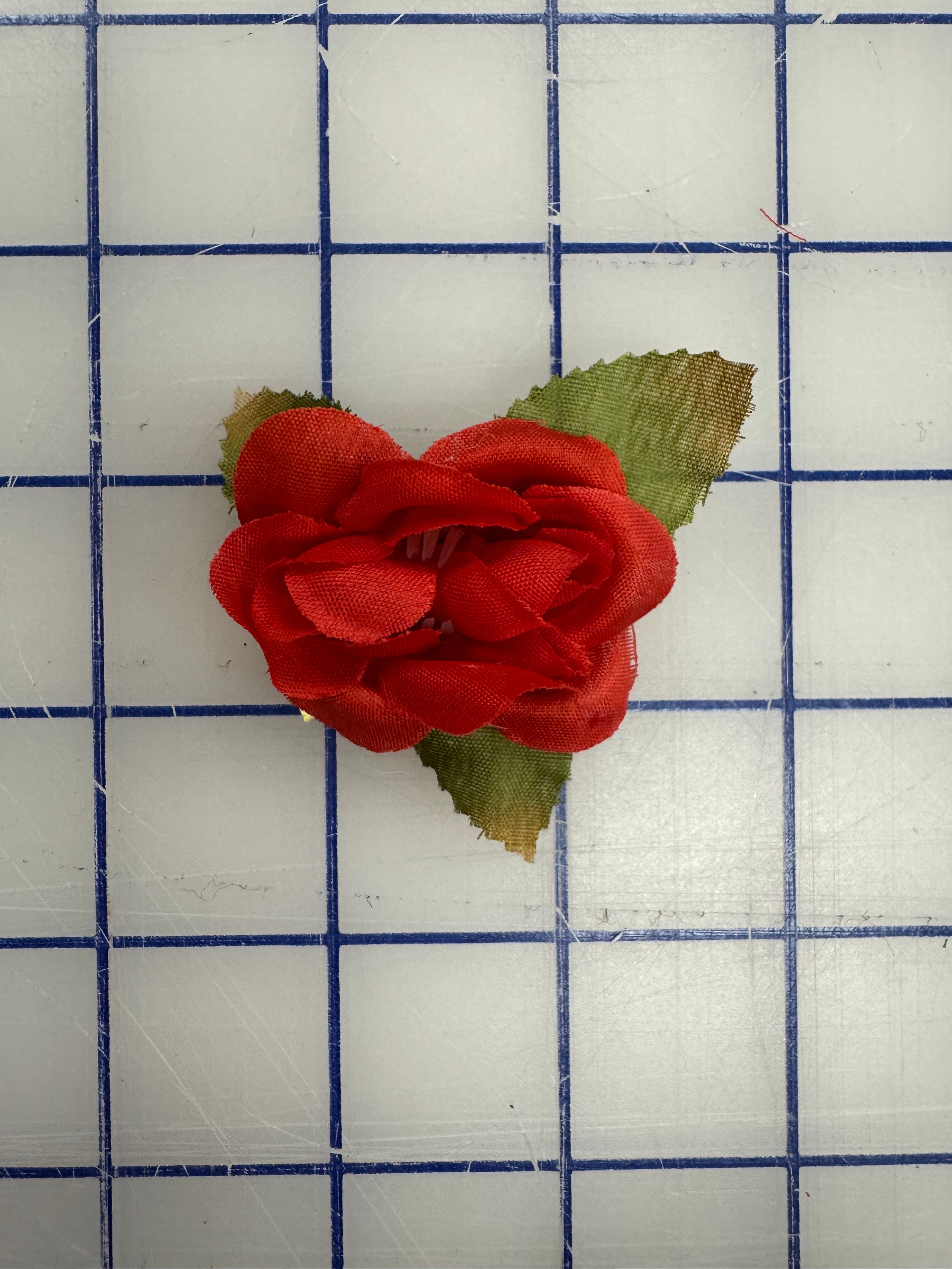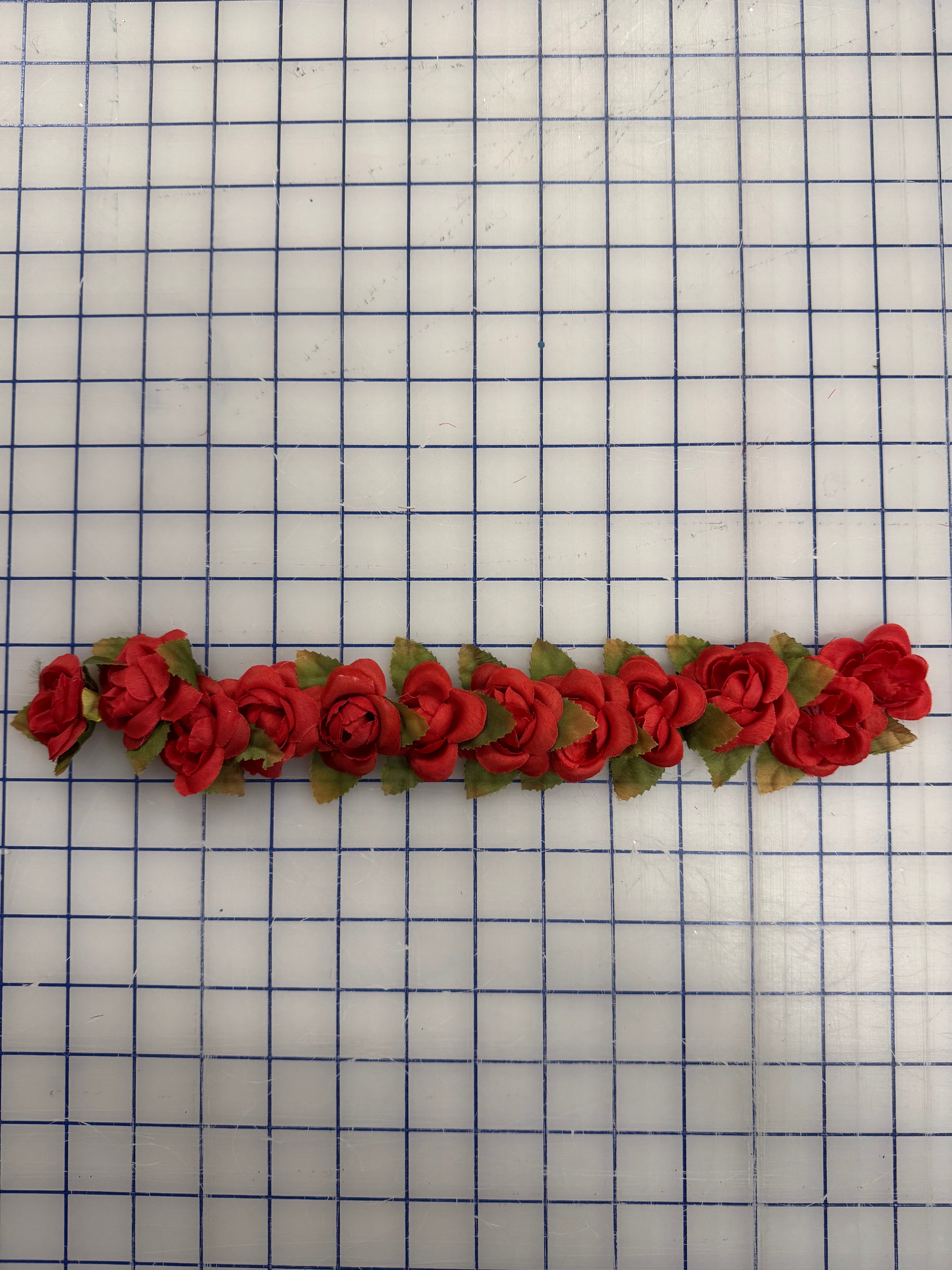 Beautiful, small roses, red. These roses come attached to a ribbon. They can be used "as-is" for a headpiece, or cut apart and used individually.