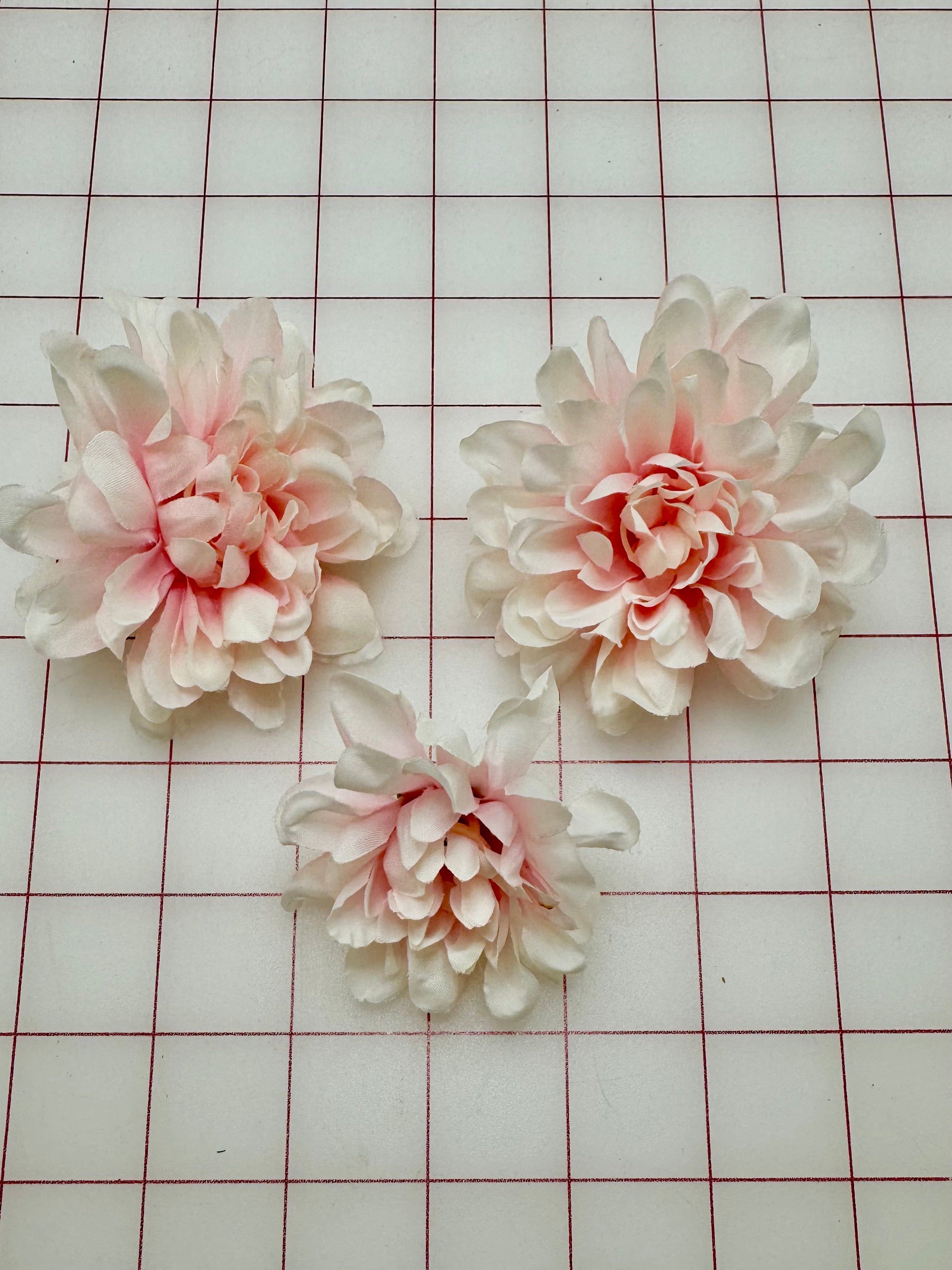 Priced per 3-pack. Beautiful Peachy pink and white flowers. Perfect sizes to use on headpieces, tutu plates, and many different costumes.