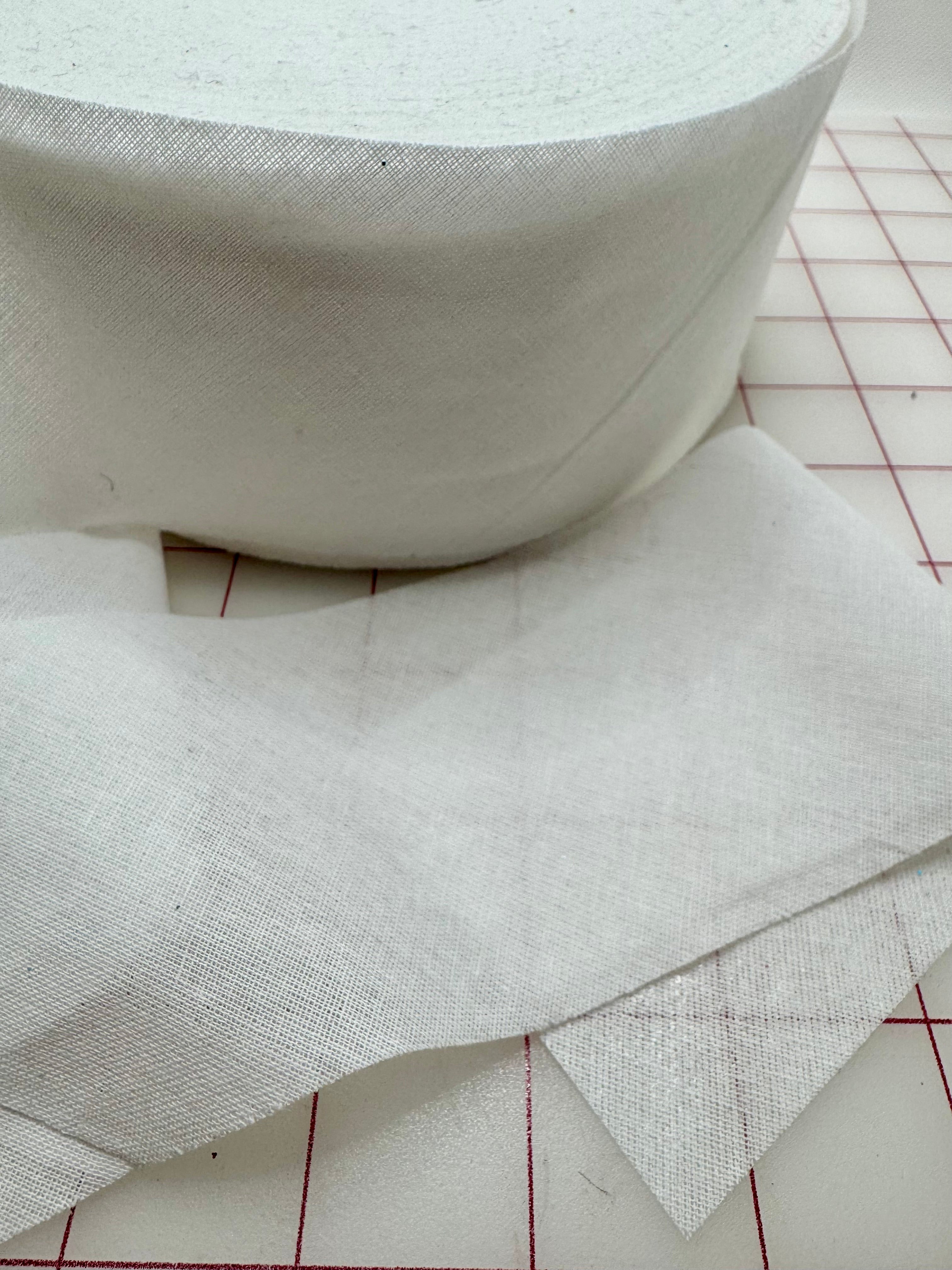 Priced per yard. Fusible interfacing. White. Perfect for jackets, suits, men's tailored costumes. 3-inches wide. Fusible interfacing tape is a woven polyester tape with glue on one side. It is activated by heat, so must be pressed onto the garment.