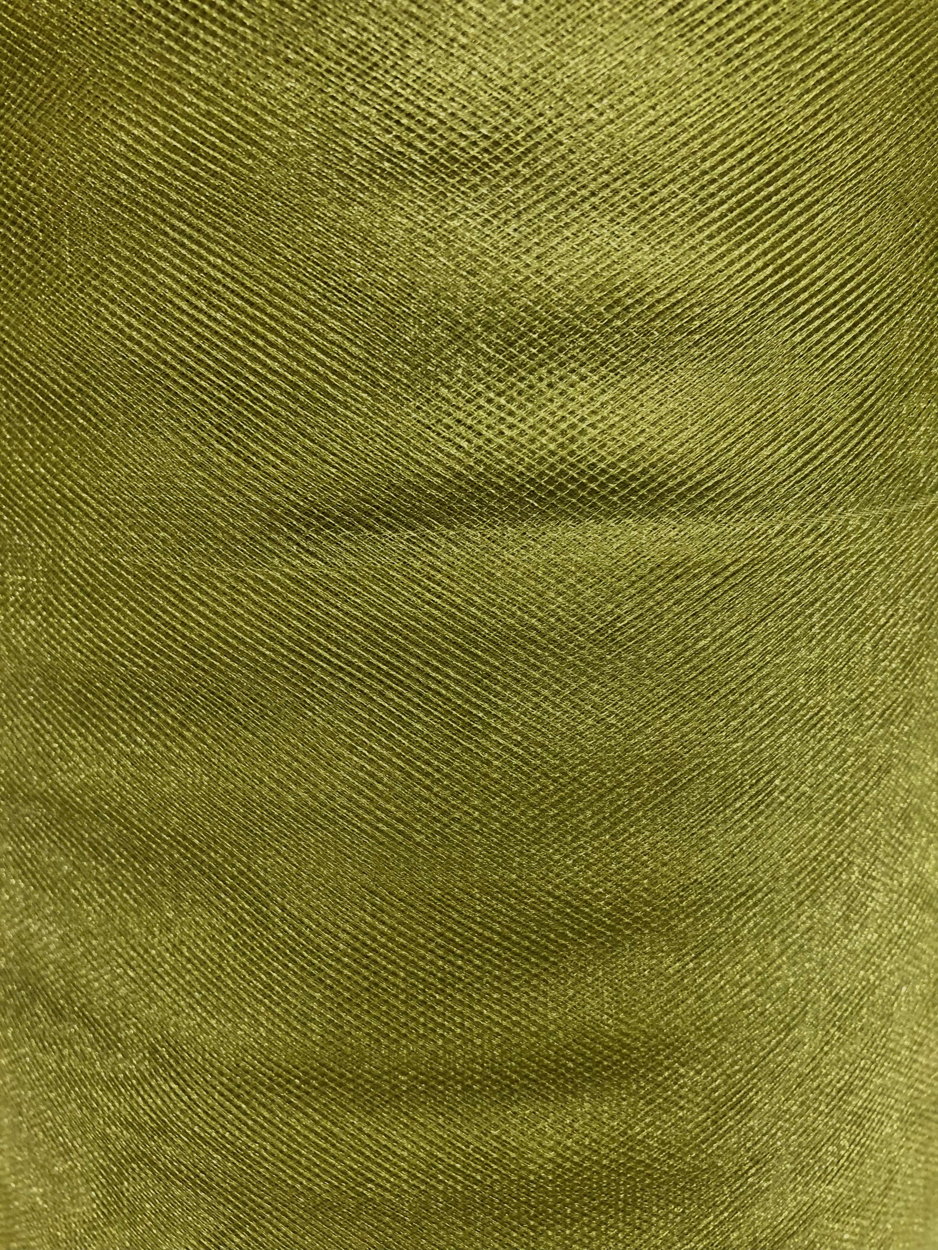 Priced per yard. A beautiful antique metallic green/gold glimmer tulle. 54-inches wide. Comes off a roll, not machine-folded on a bolt. Special purchase! Was actually a dye lot mistake that turned out to be beautiful. Cannot be re-ordered, so once it is gone, it is gone!