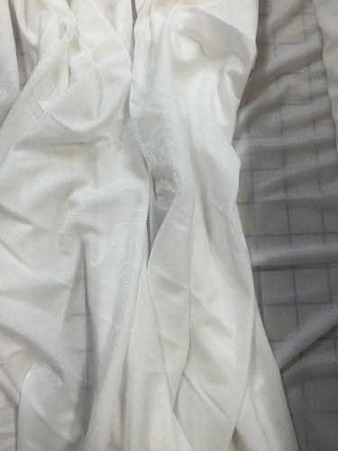 Priced per yard. White glistenet (also called glissnette, glissenet, glistenette), 60-inches wide. This glistenet has a matte side and a sparkly sheen on the other side. The stretch is down the length of the fabric. I is strong, stretchy, and does not run.