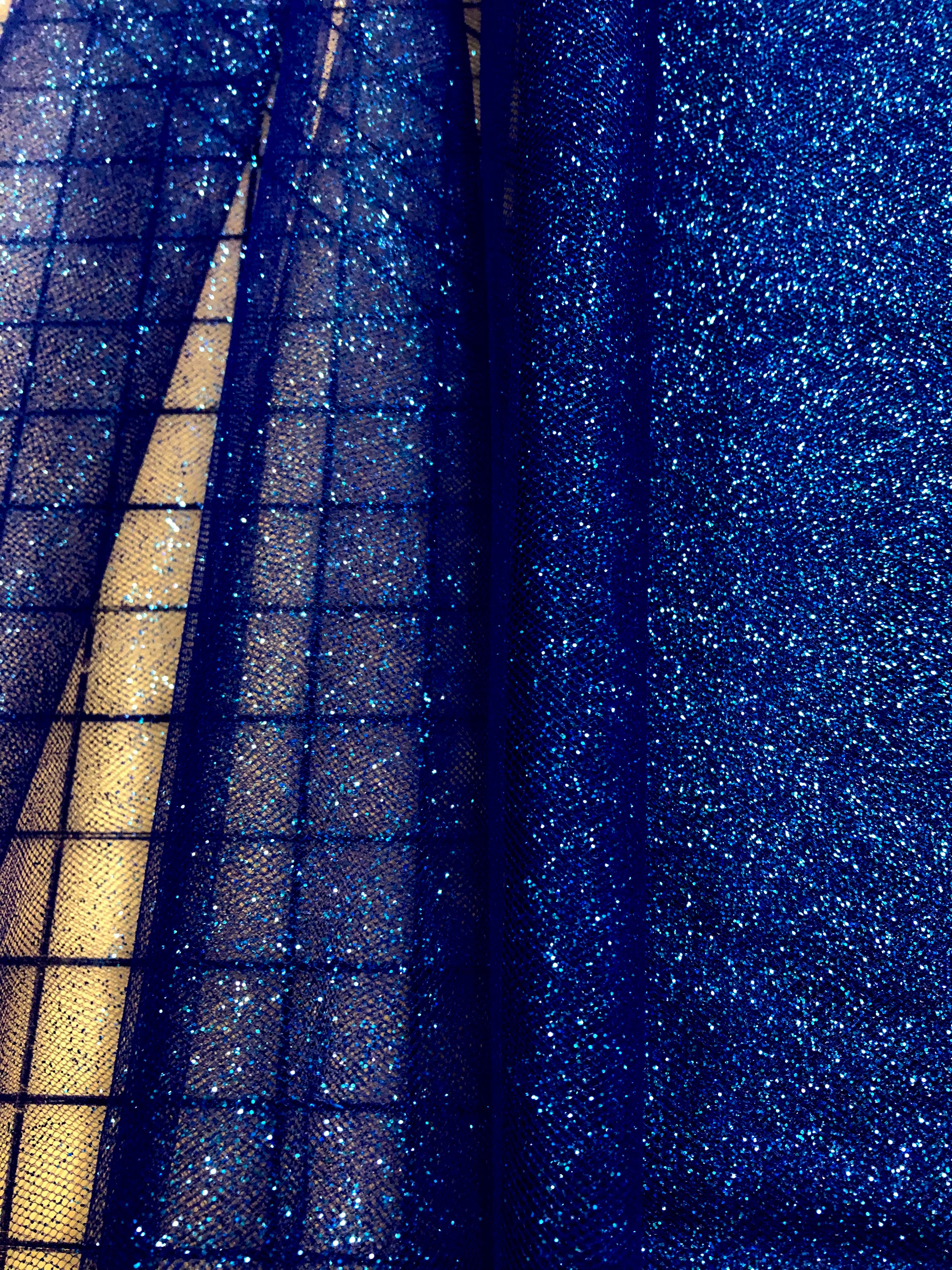 Priced per yard. Vibrant Royal Blue glitter tulle. This tulle does have some glitter shed. 54-inches wide. Special purchase. Be sure to buy what you need. Cannot be re-ordered.