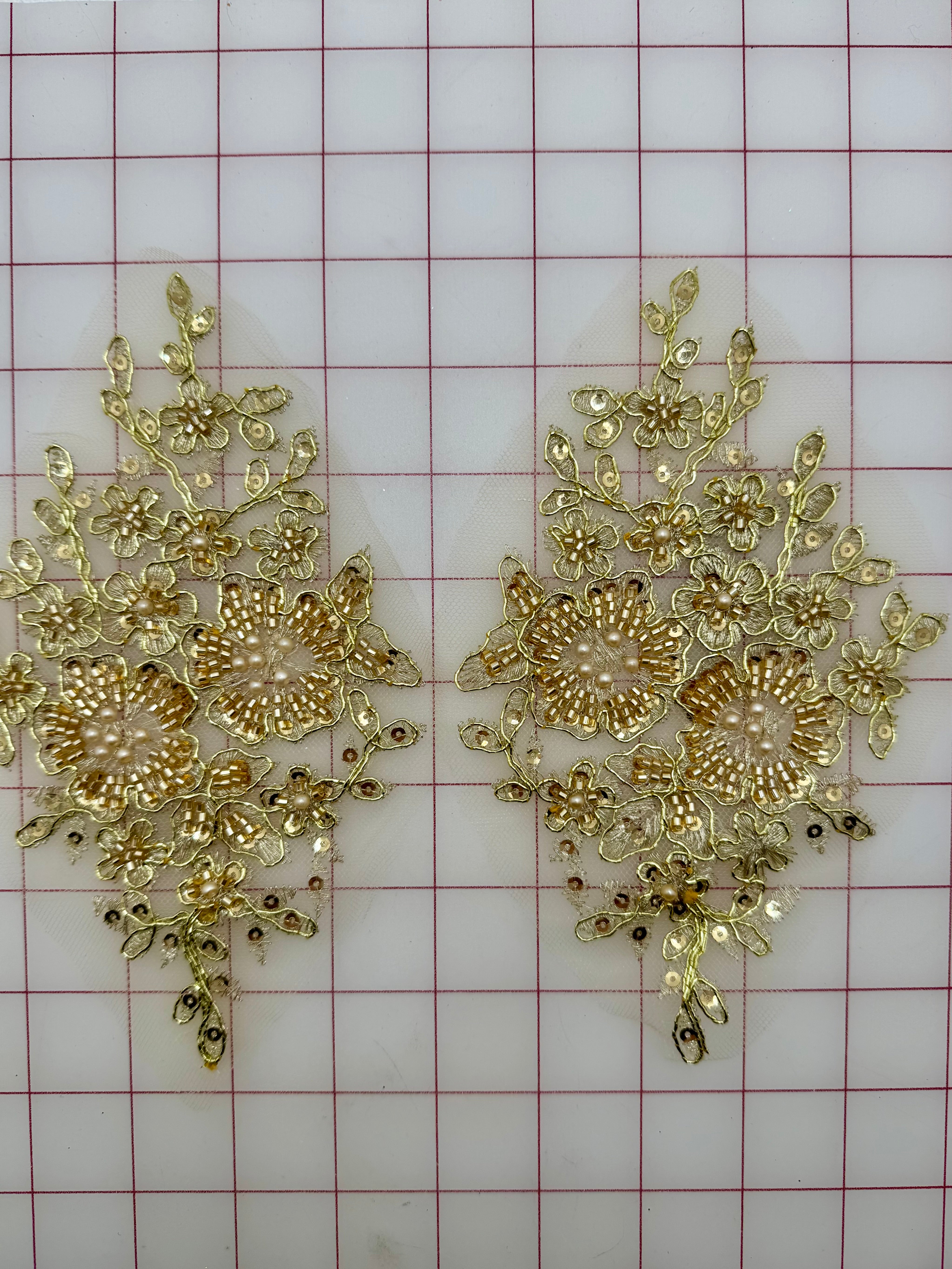 Priced per pair. These stunning, gold-corded appliques are lightweight, perfect for embellishing classical tutu plates.