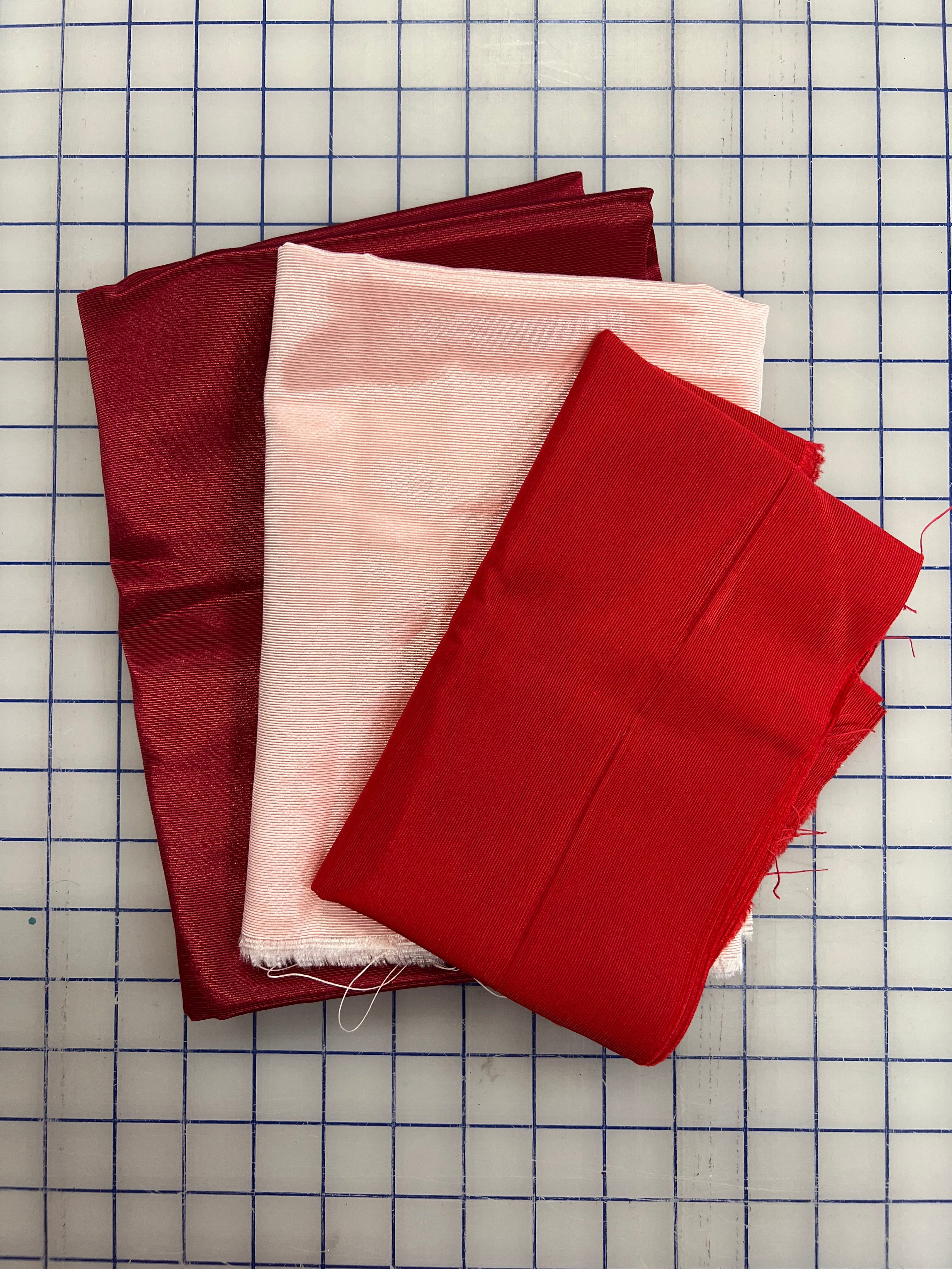 Priced per grab bag. 1.5 yards (3 pieces) of Red and pink bengaline.
