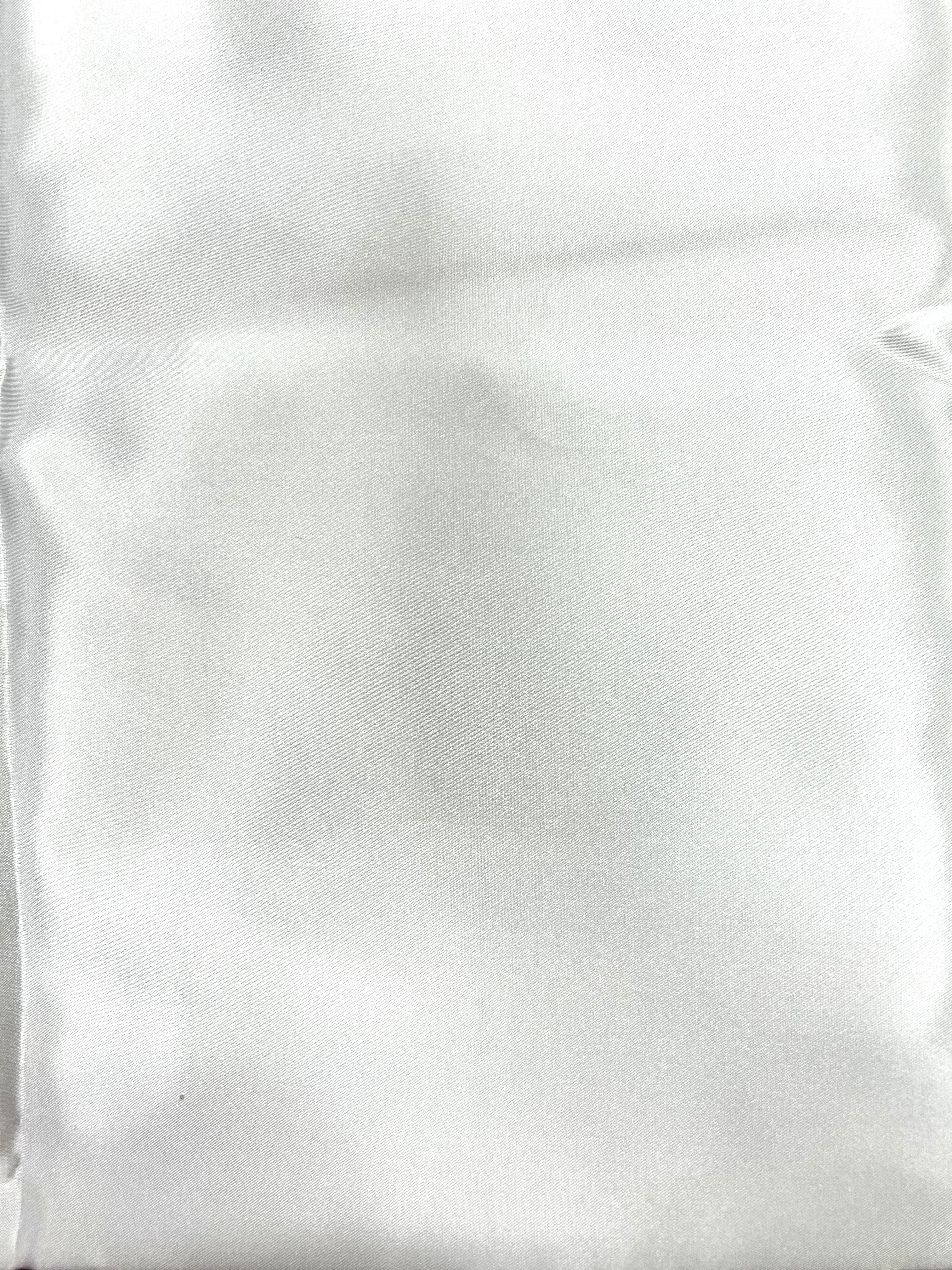 Priced per 1/2-yard and 3/4-yard pieces. White, 100% polyester satin 60-inches wide.