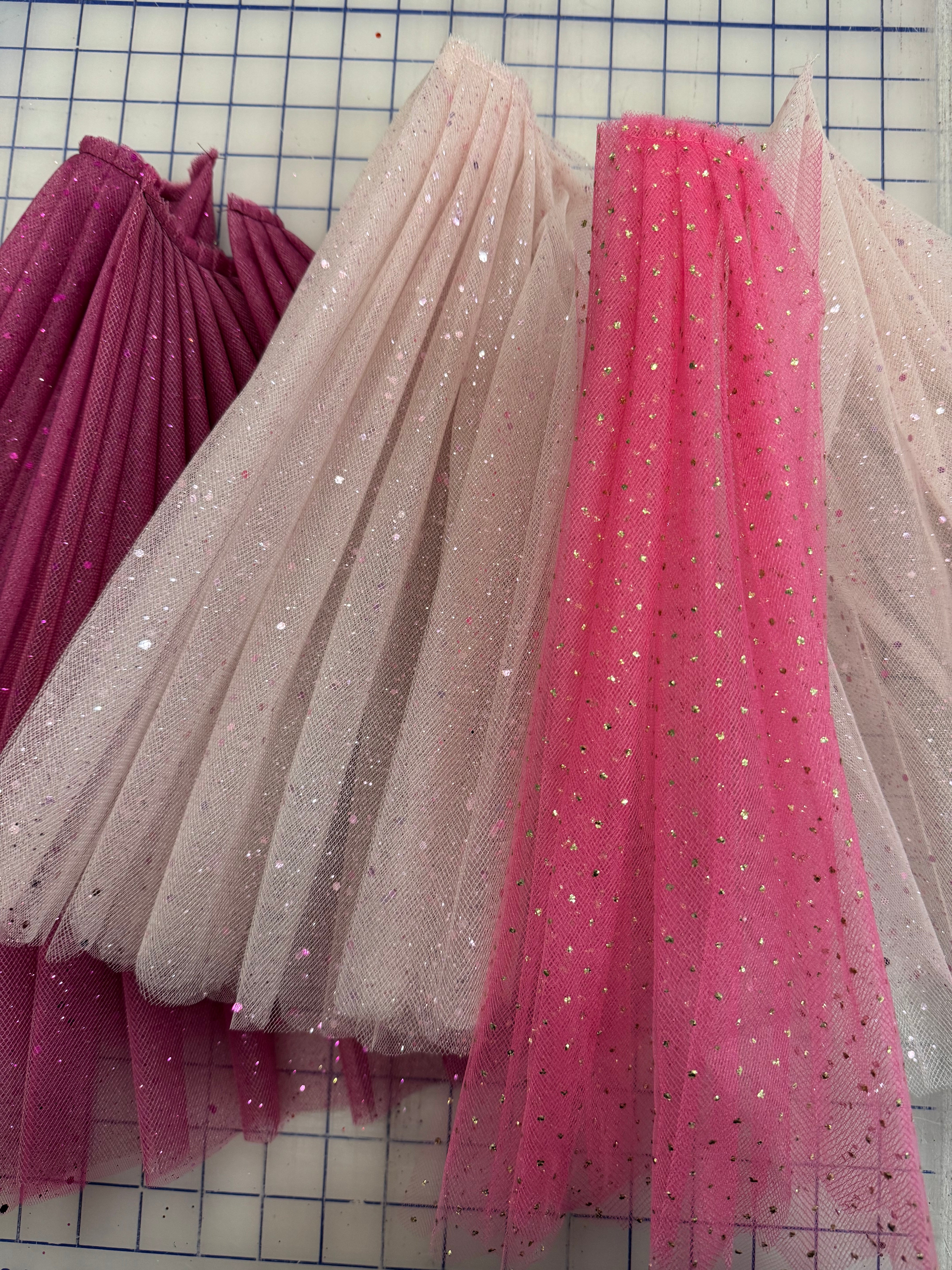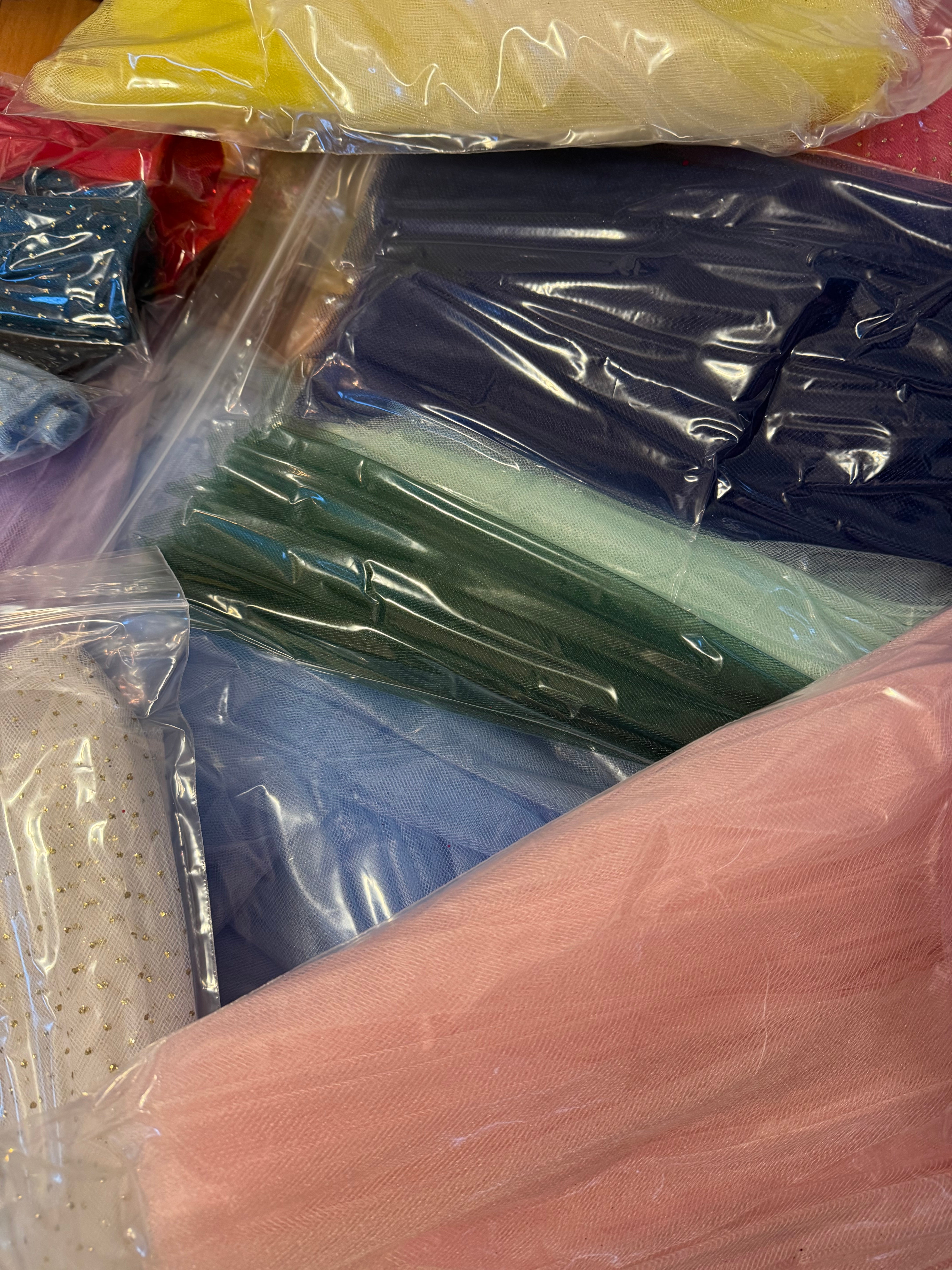 Priced per bag. Assorted classical tutu double-hand-pleated net pieces. Perfect samples to show. Ten bags available.