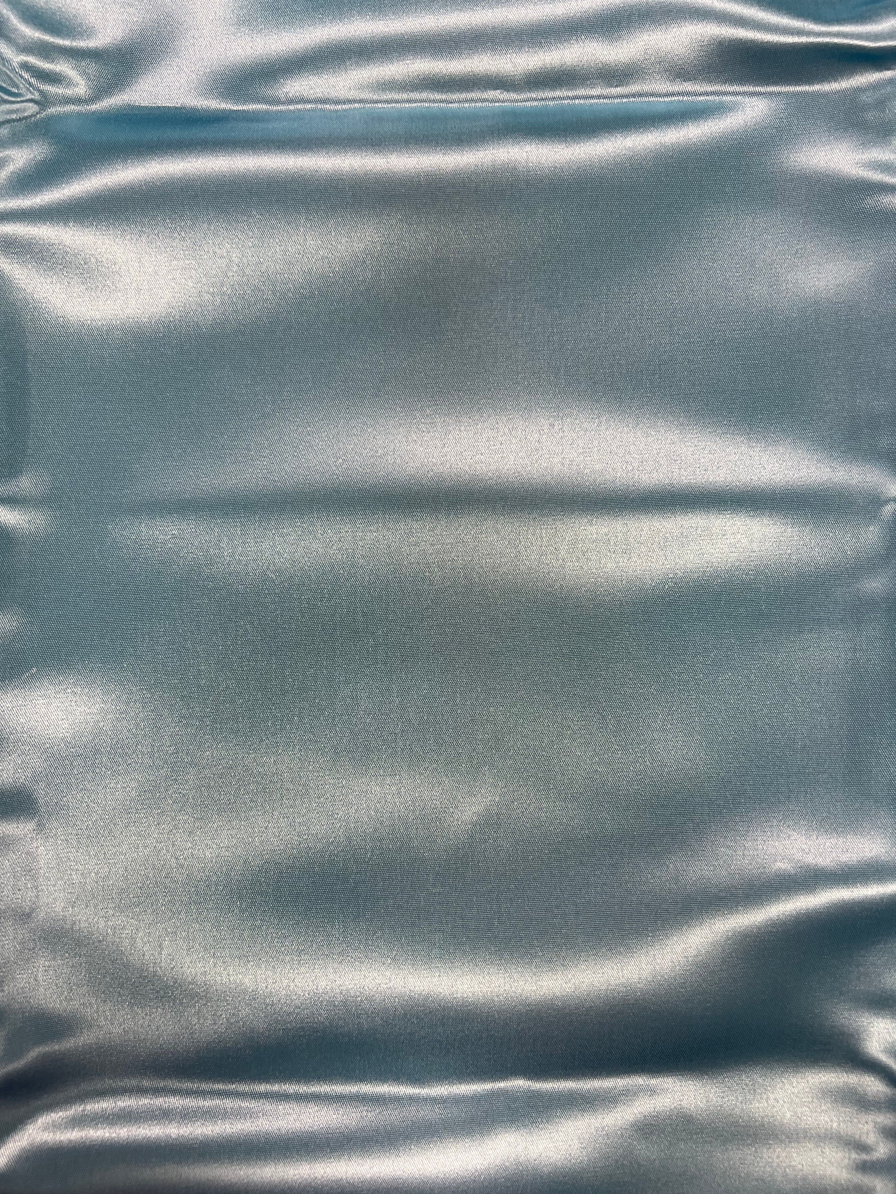 Priced per 3/4-yard pieces. Columbia Blue, 100% polyester satin 60-inches wide.