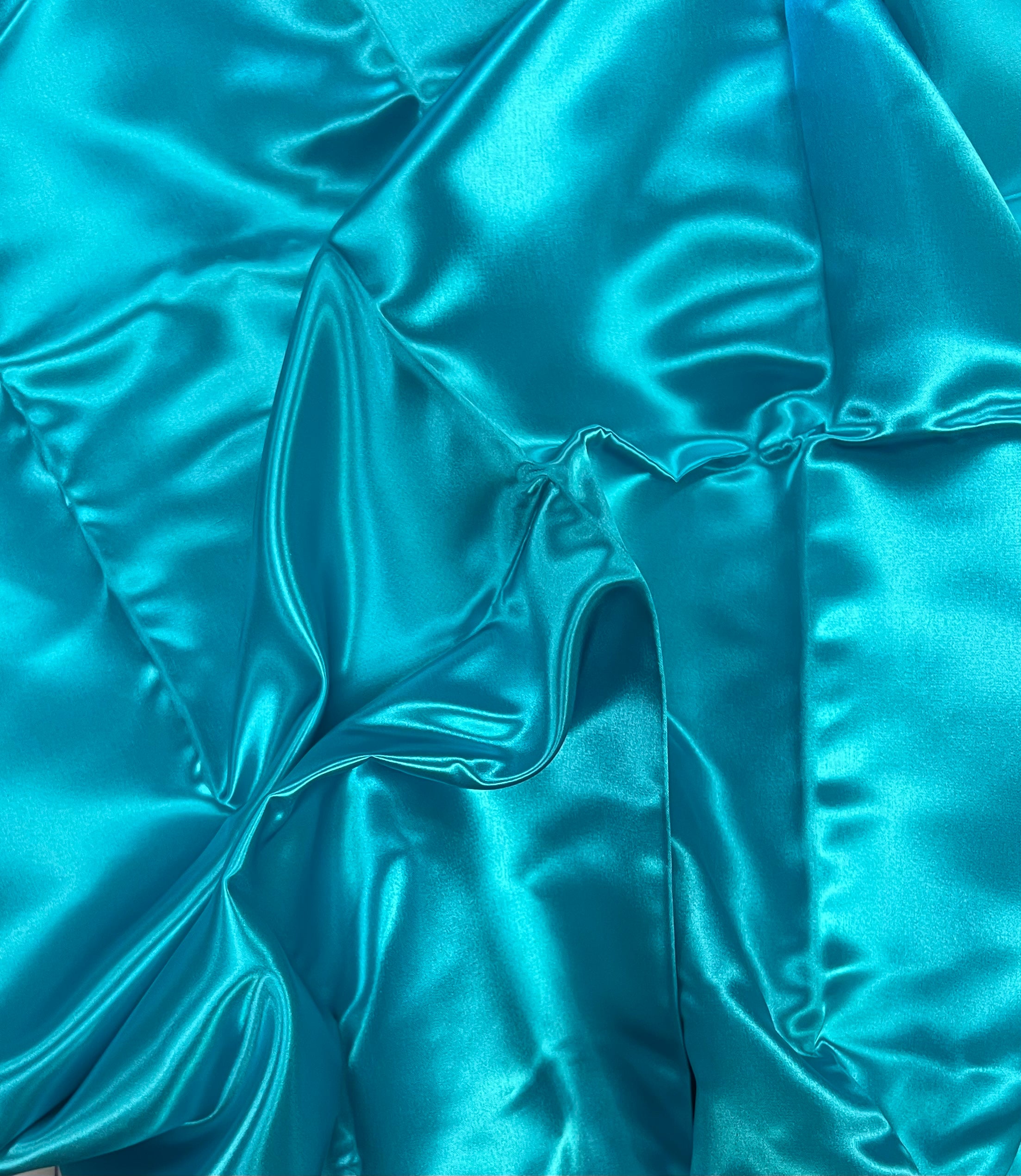 Priced per 3/4-yard pieces. Peacock (Turquoise), 100% polyester satin 60-inches wide.
