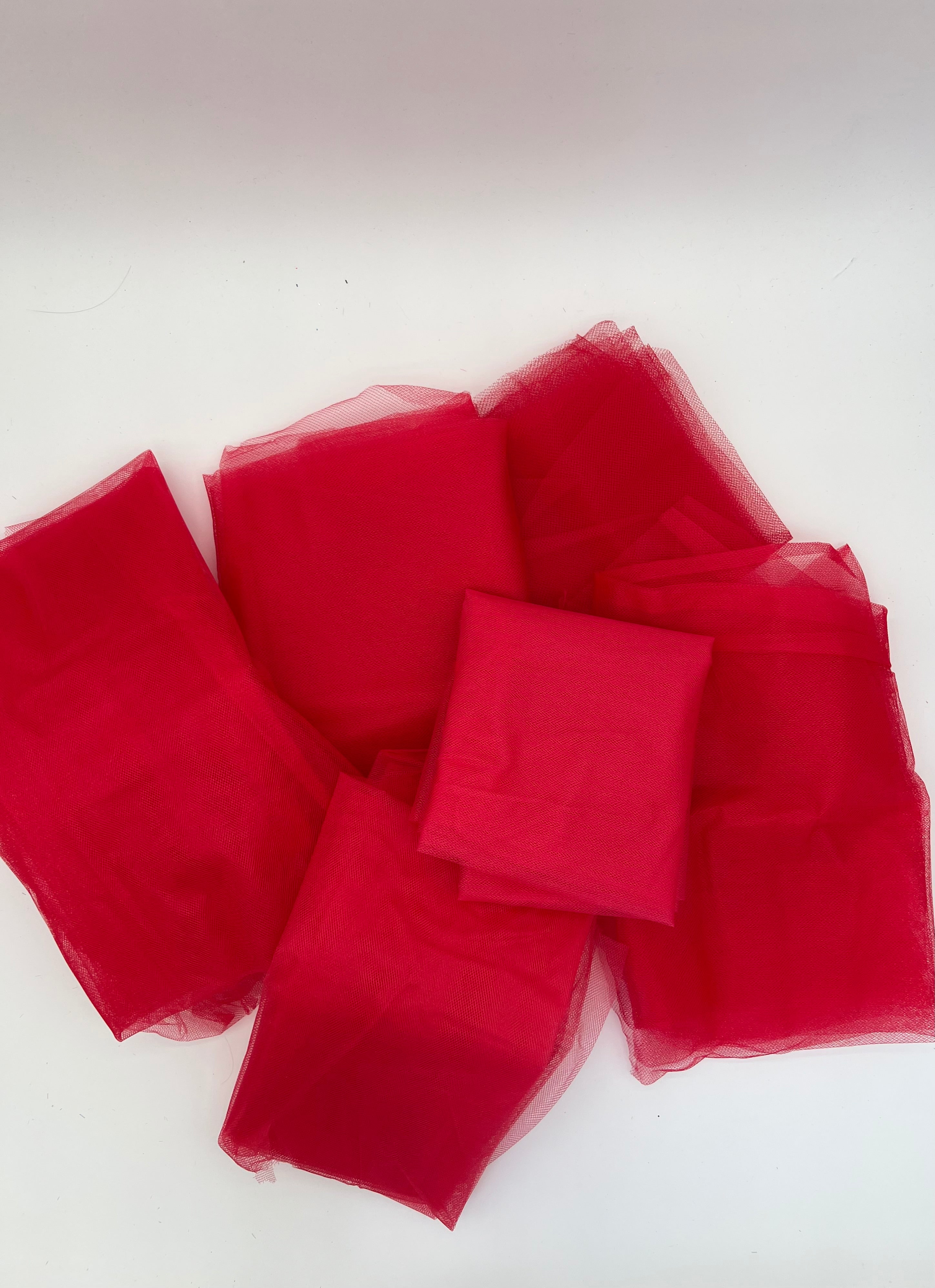 Priced per grab bag. +/- 5 yards. Shades of red net.