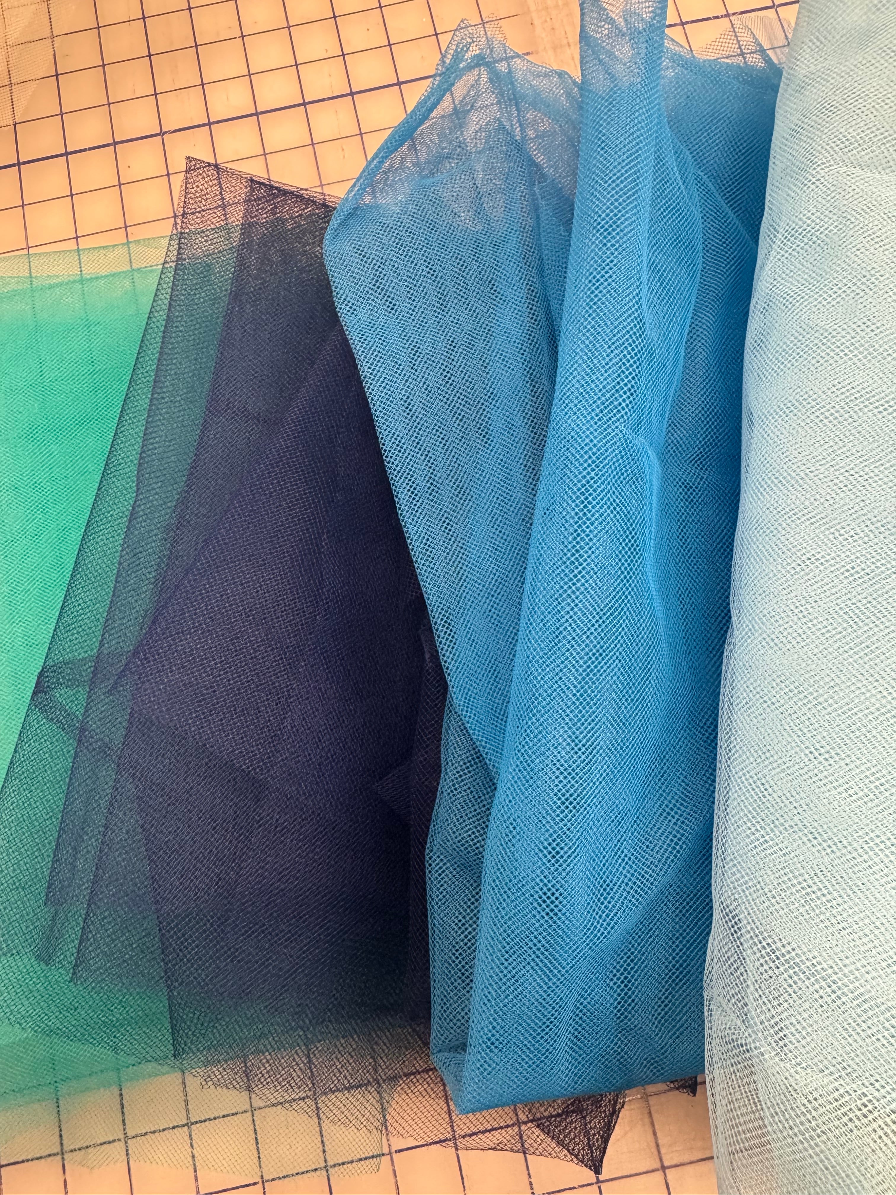 Priced per 4.08-yard grab bag. Various shades of blue tutu net, 60-inches wide. Diamond-Hole.