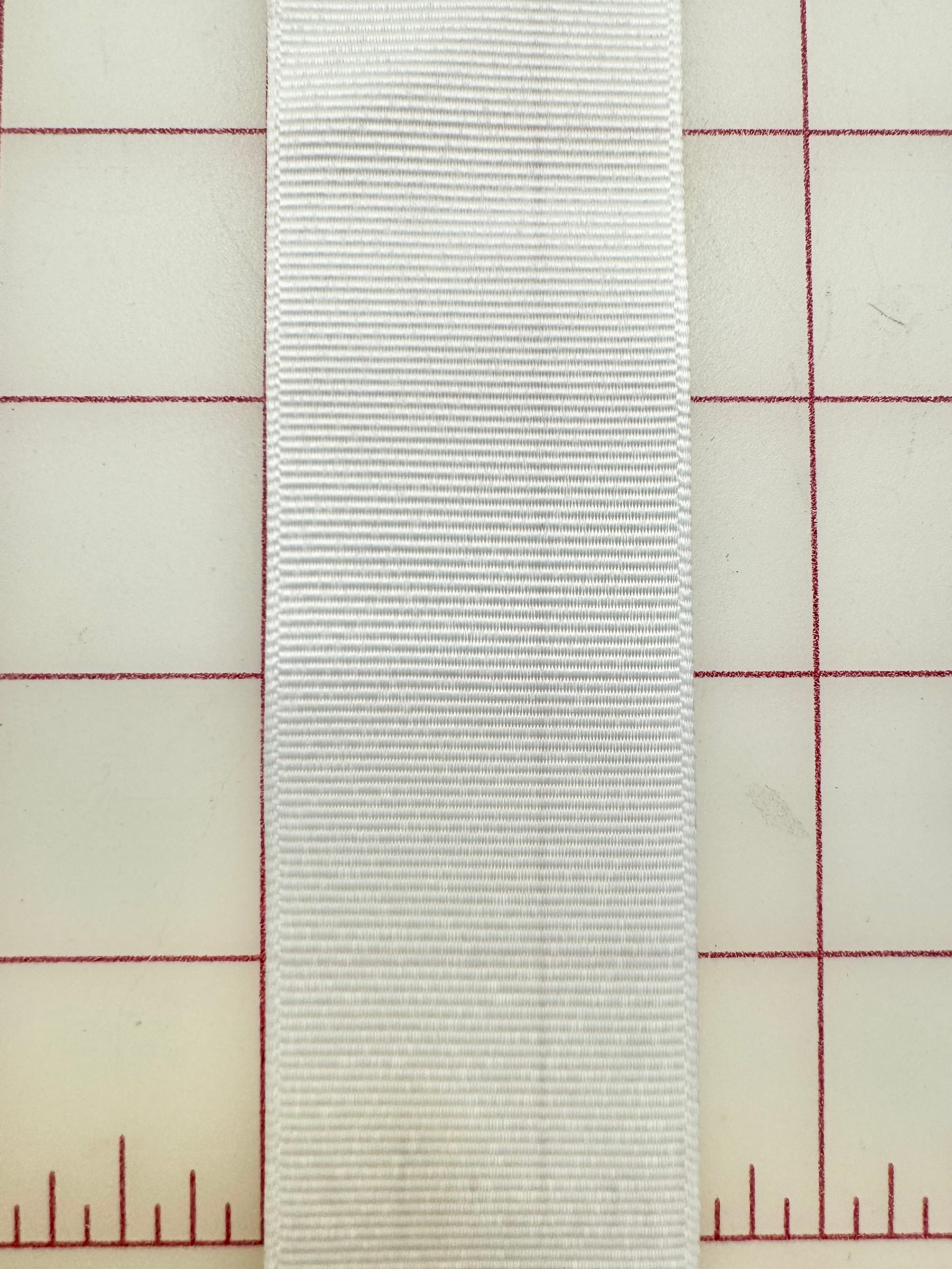 Priced per yard. White, 1.5-inch grosgrain ribbon. 20% discount on 50-yard rolls.