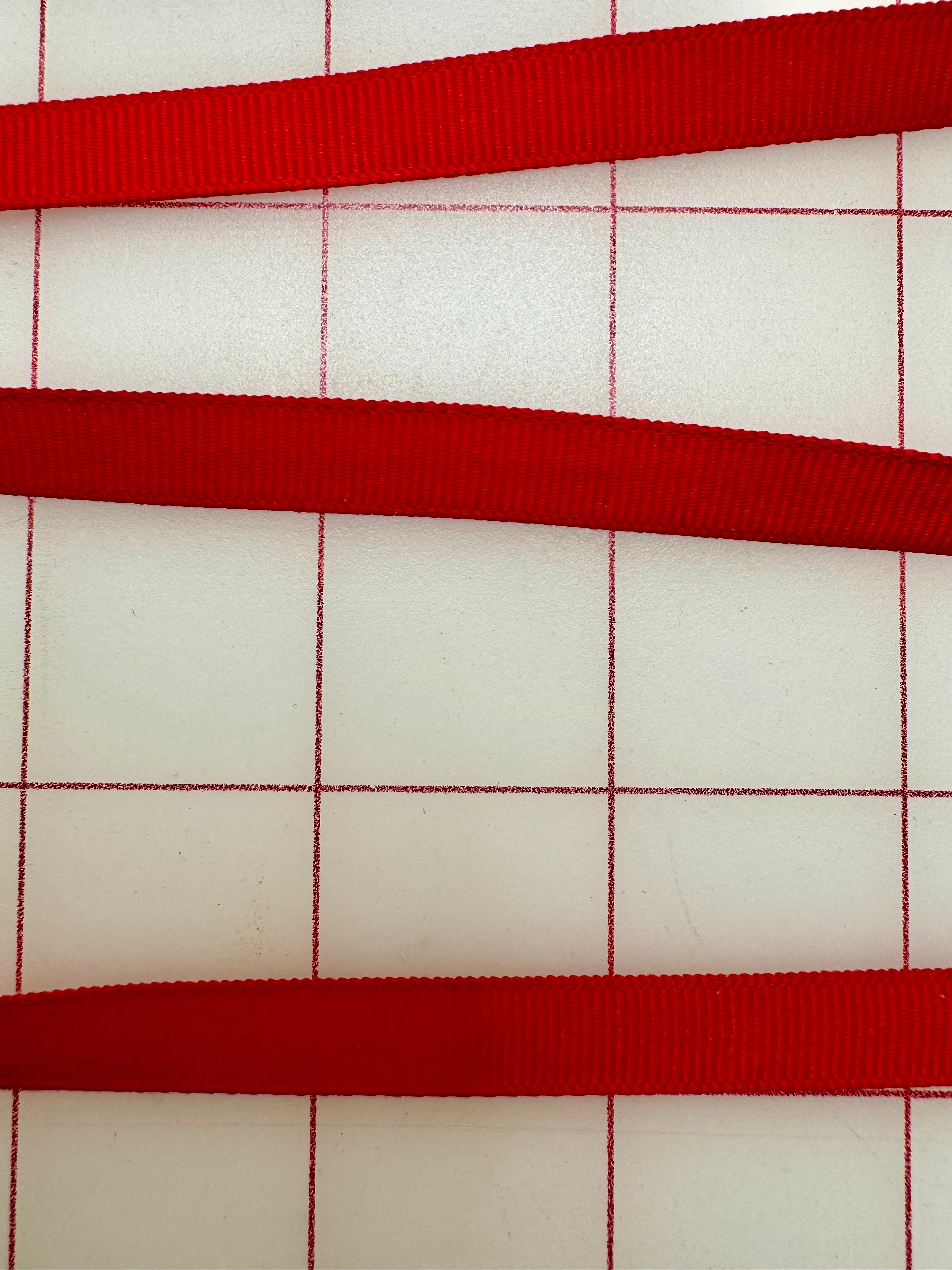 Priced per yard. Red 3/8-inch grosgrain ribbon.