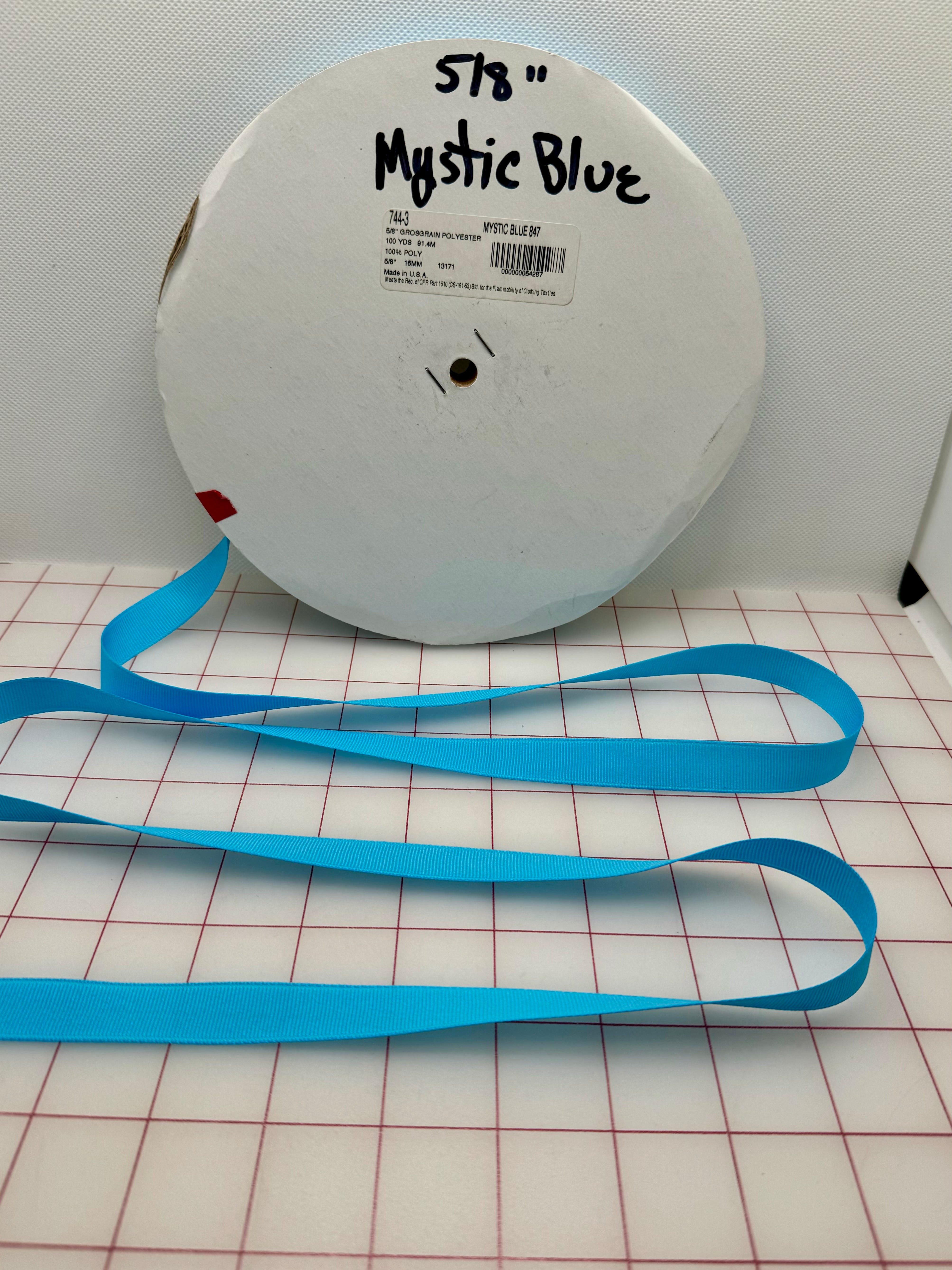 Priced per yard. Mystic Blue (Turquoise), 5/8-inch grosgrain ribbon.