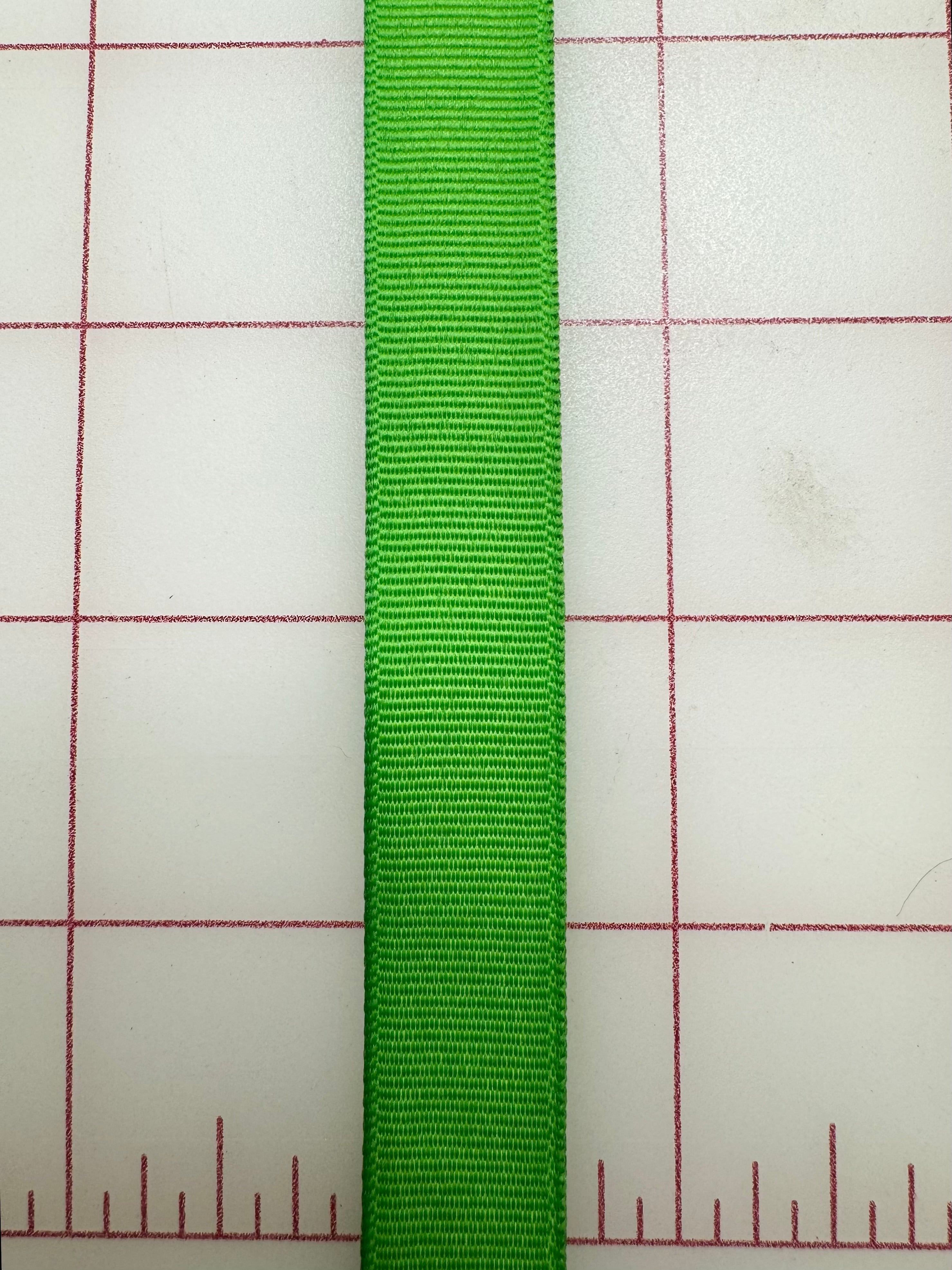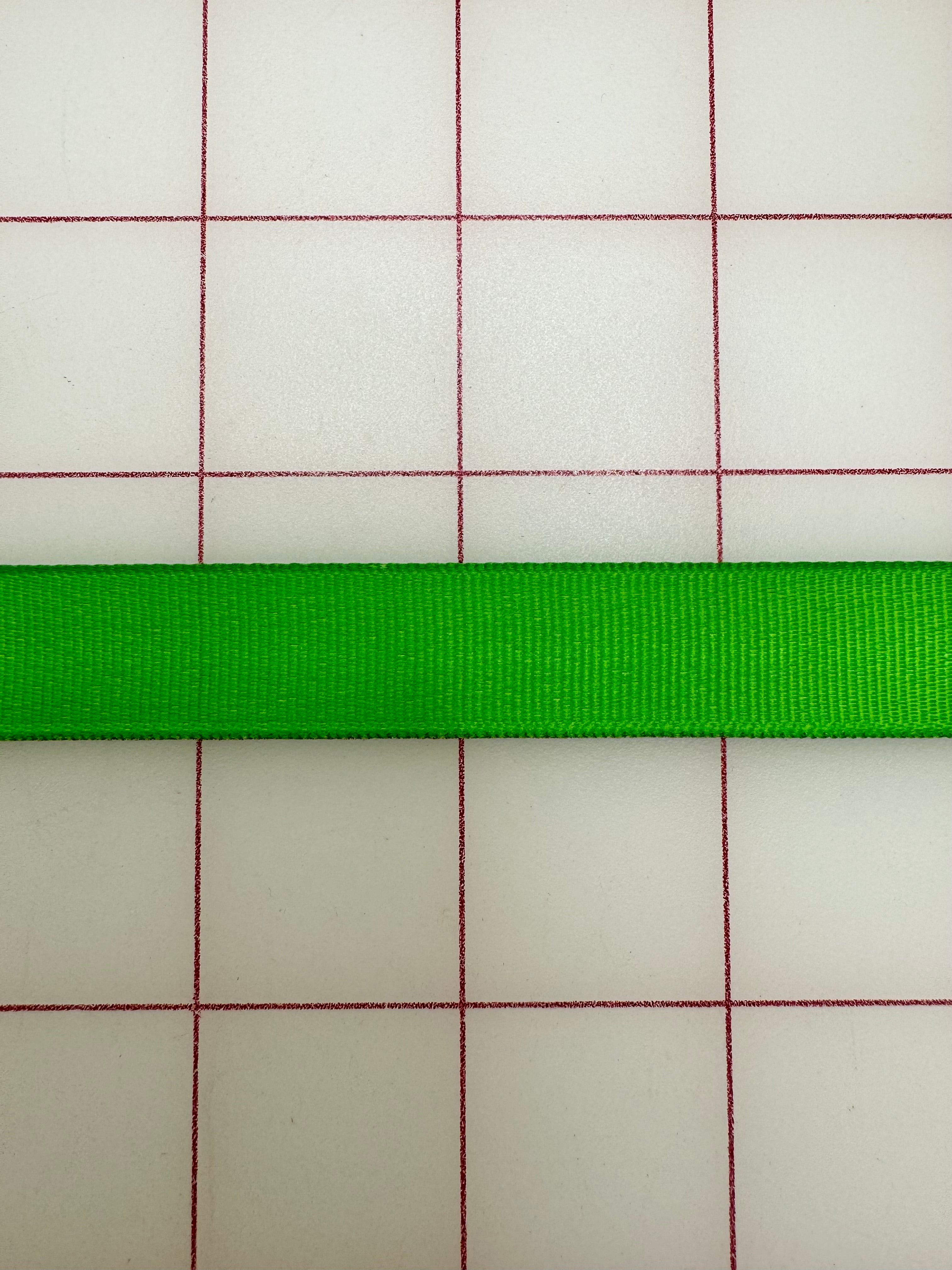 Priced per yard. Spring Green, 5/8-inch grosgrain ribbon. Perfect for the center front ribbon detail on Peasant-style ballet bodices.