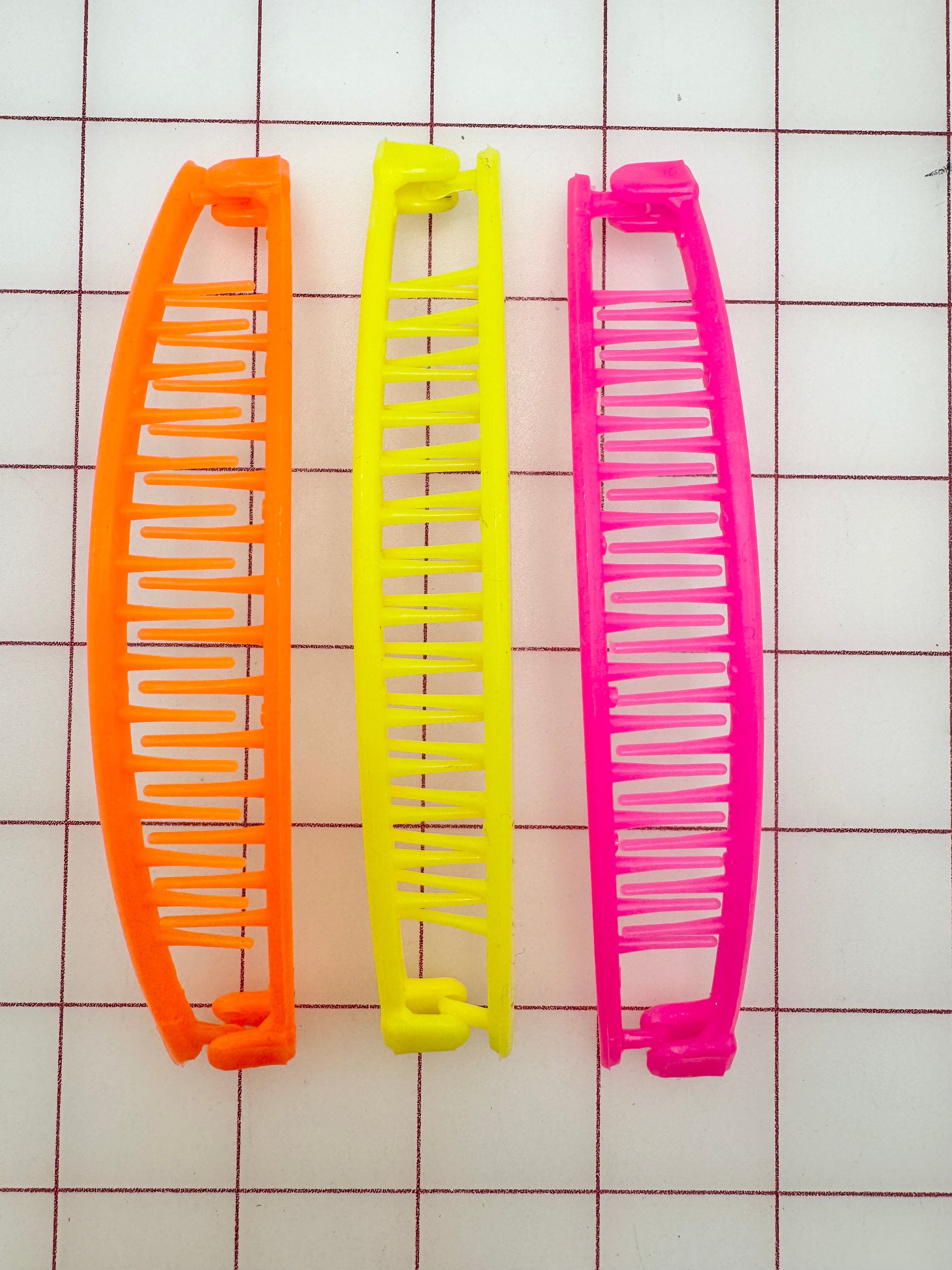 Priced per 3-pack. Beautiful, bright pink, yellow, and orange hairclips.