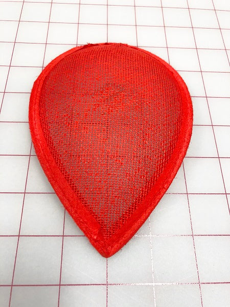 Priced per piece. Medium, oval, teardrop shaped buckram headpiece form with our spray color service. 6.5"L x 4.5"W. Color choices – Kelly Green, Pale Green, Light Blue, Light Pink, Fuchsia, Red, Royal, Purple, Black, Brown.