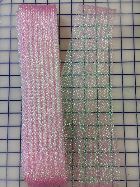 Priced per yard. Light Pink waffle ribbon horsehair. Iridescent. 20% discount on 20-yard roll. Great for use in costume embellishment, Ribbon Candy tutus, etc. Smallest length sold: one yard. Sold in whole yard increments only online. To order in partial-yard increments, please call us at 877-888-8266 or 704-519-4771.