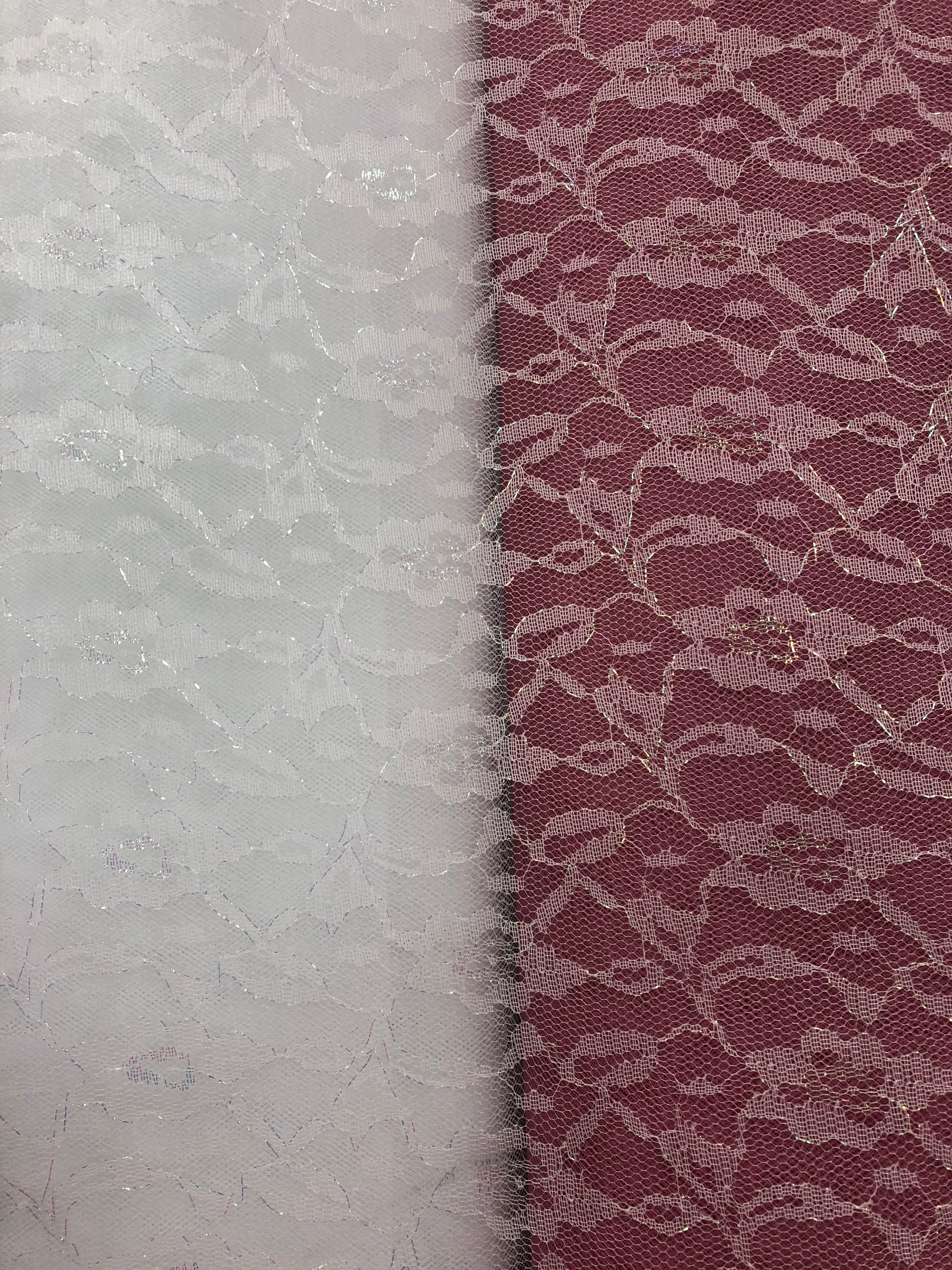 Priced per yard. Iridescent white lace. 60-inches wide. Beautiful, soft lace with iridescent highlights. Perfect for many costumes - tutus, dance dresses, skirts, etc. Makes an elegant top layer for an Aurora's Wedding tutu.