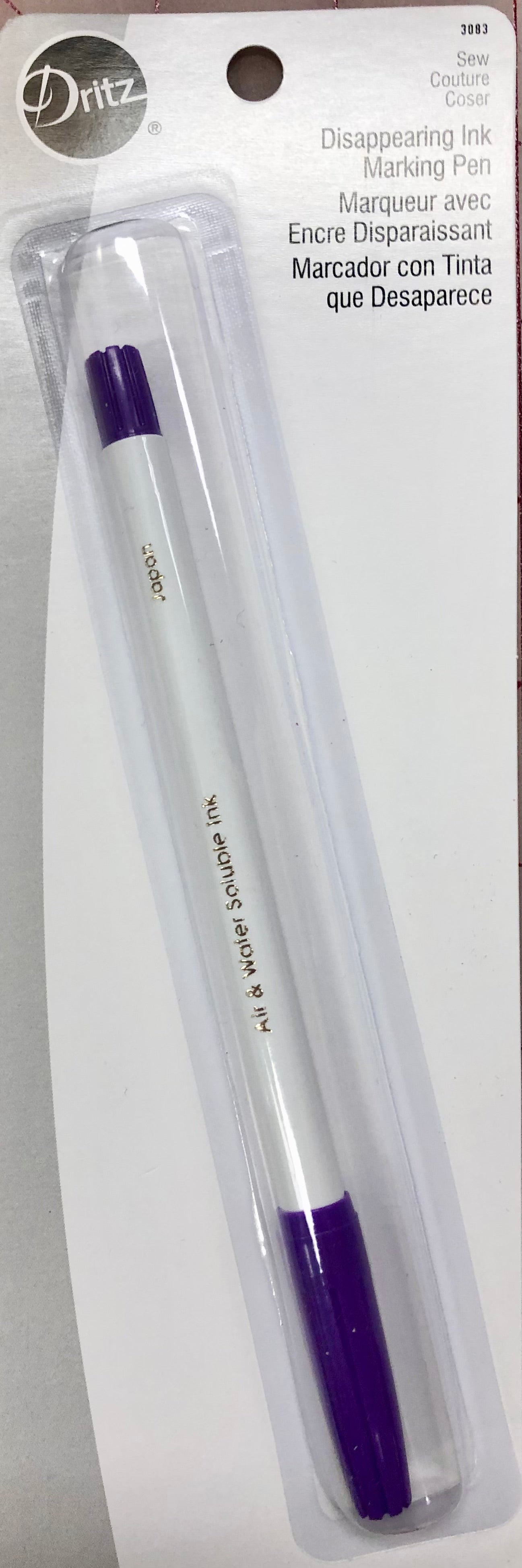 Priced per piece. Purple disappearing ink pen for marking seam lines and other pattern markings.