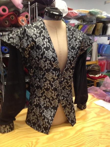 This doublet has front closures, separate sleeves on a powernet under-vest for easier partnering and balletic movement.