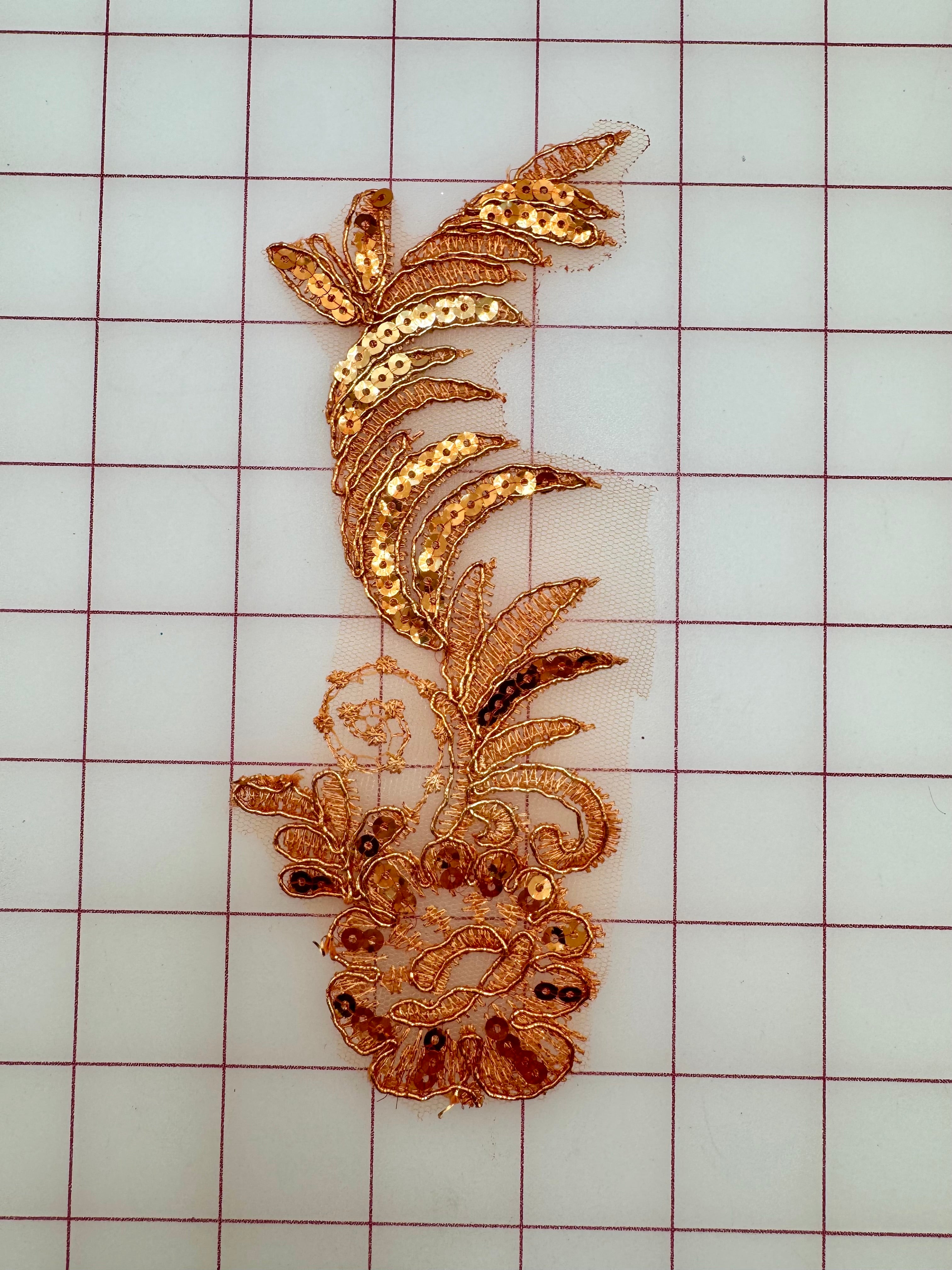 Priced per motif. Beautiful, lightweight, custom-dyed copper metallic sequined lace.