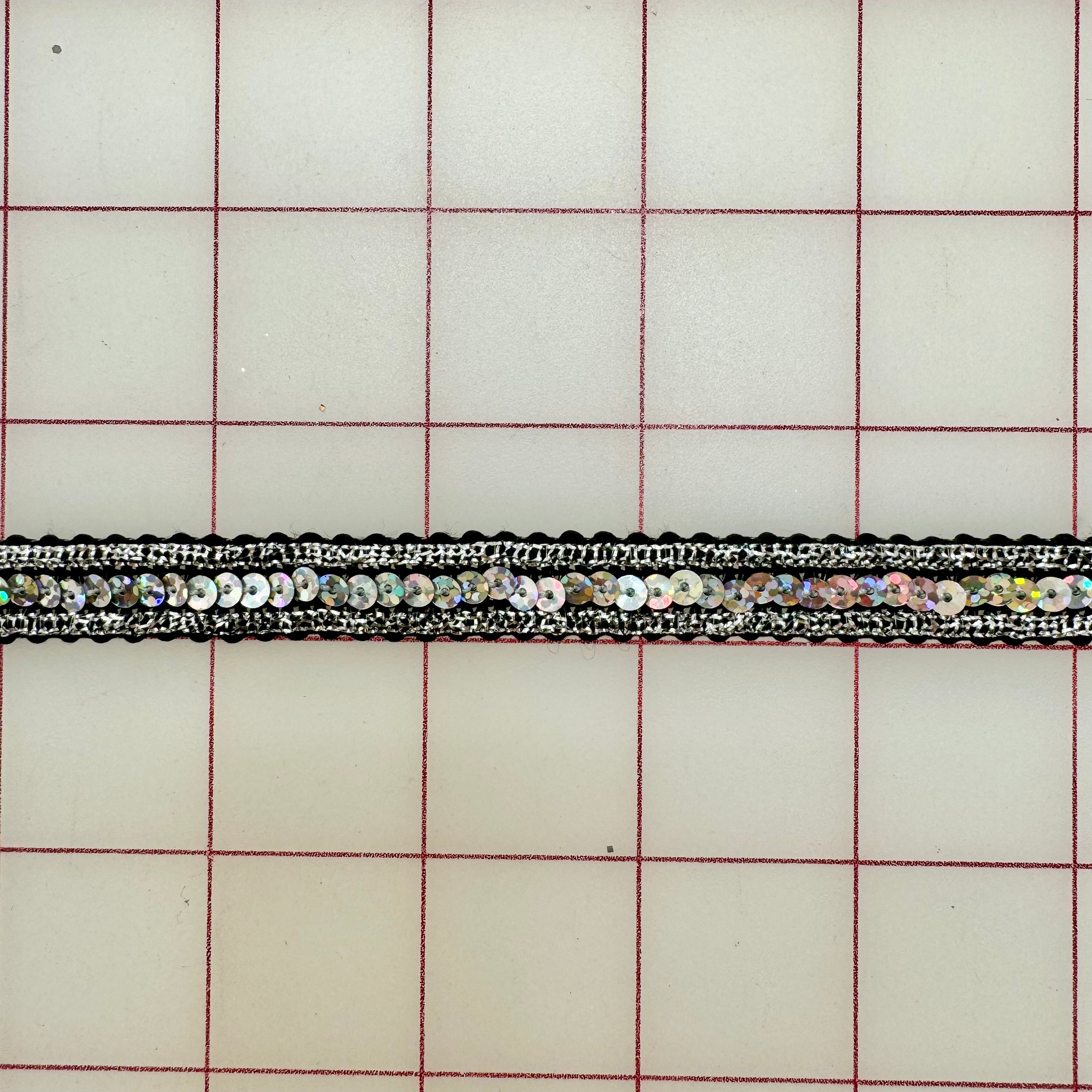 Priced per yard. Silver sequined metallic trim, 1/2-inch wide. Perfect for decorating both men's and women's costumes.