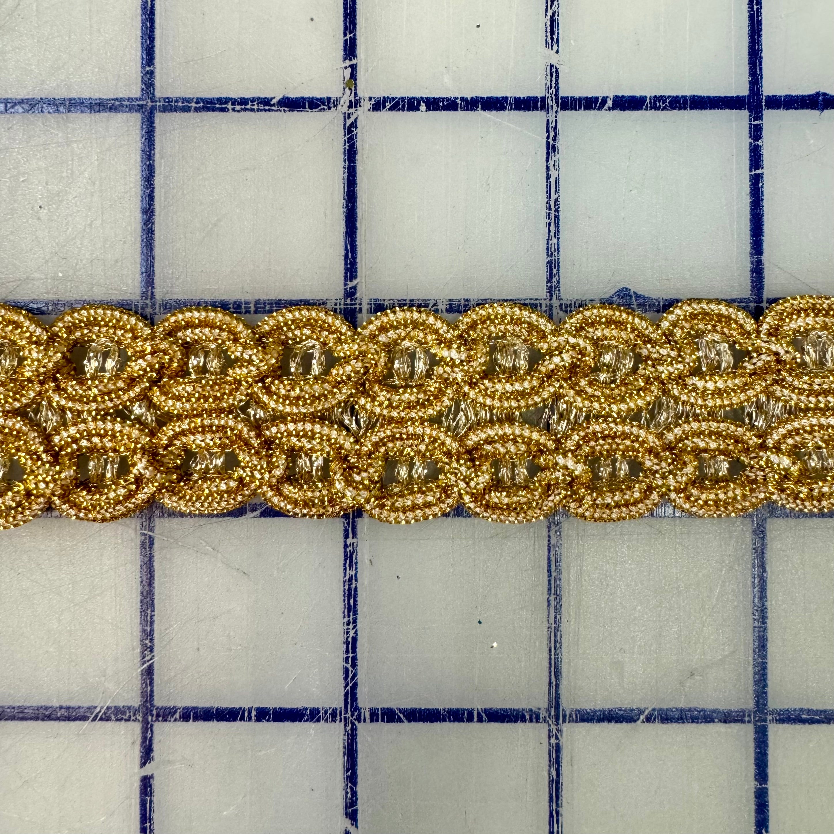 Priced per 2.5-yards. Beautiful vintage gold metallic trim. 1-inch wide.