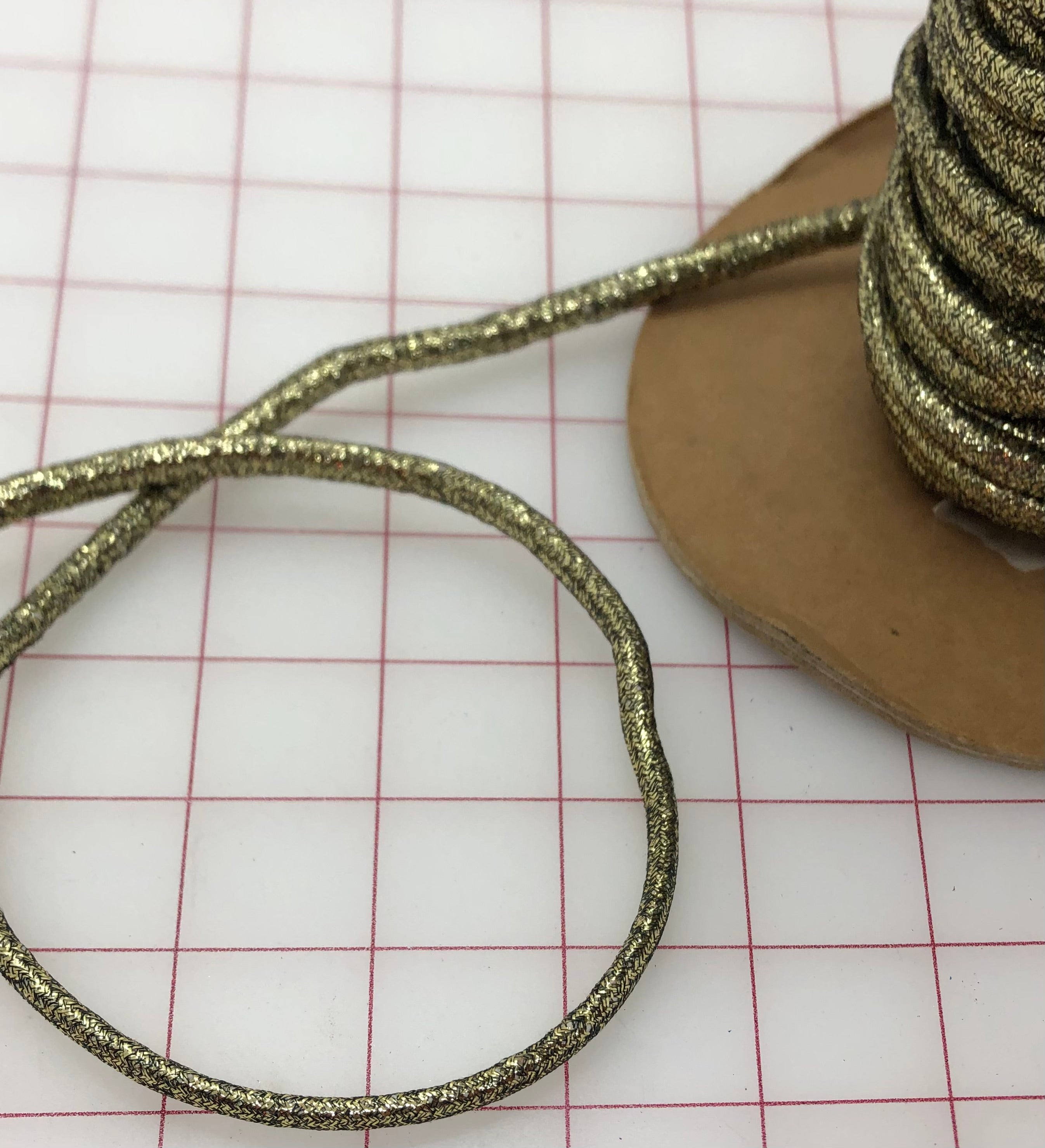 Priced per yard. Approximately 1/4-inch wide. Antique gold cord. Perfect for use in costumes and headpieces.