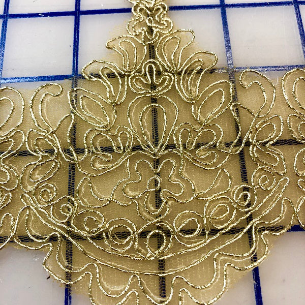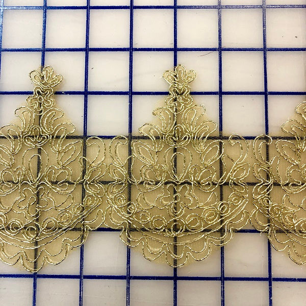 Priced per yard. Beautiful, gold metallic corded 4 inch wide trim.