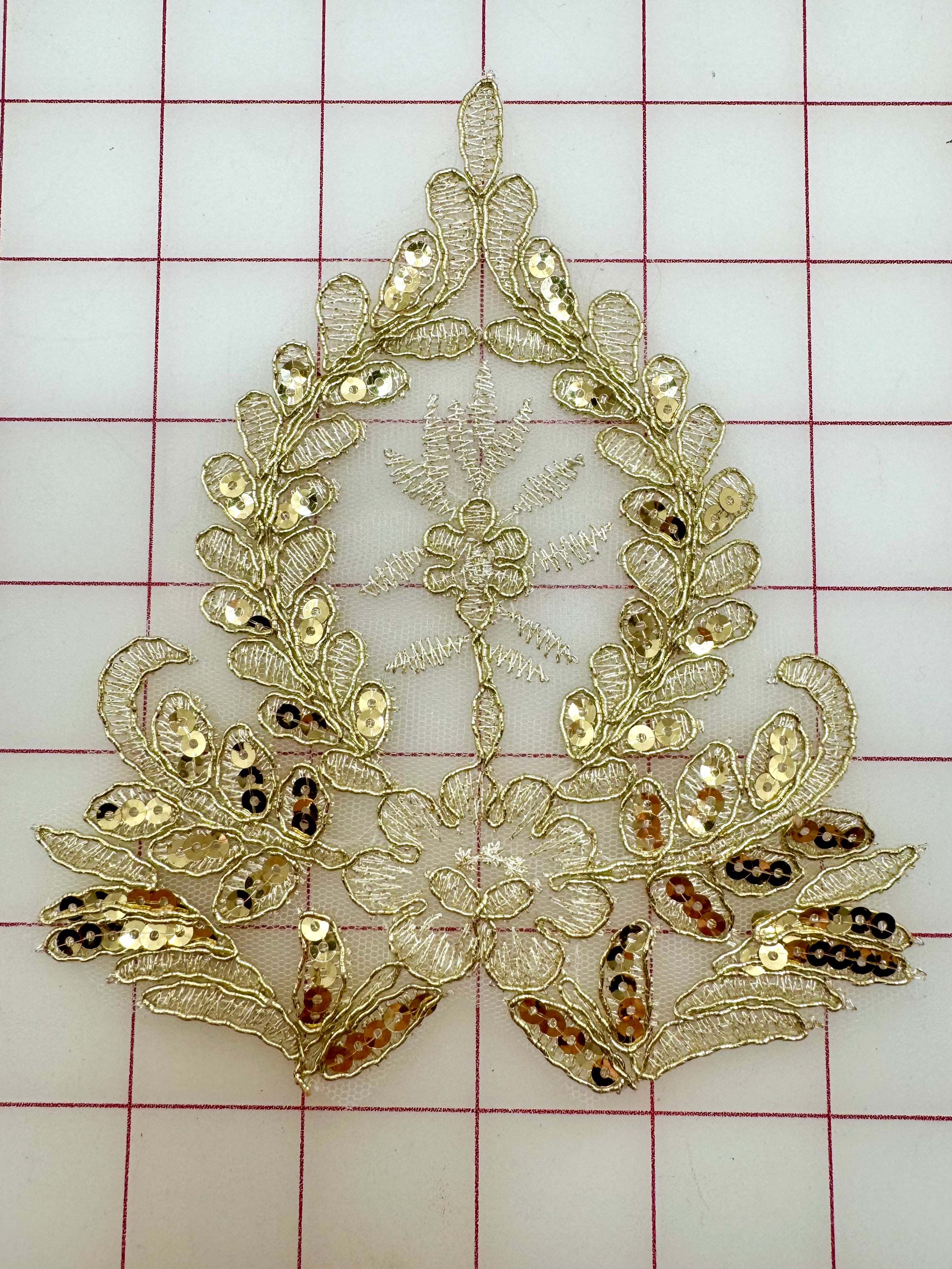 Priced per yard. Beautiful, lightweight, gold metallic sequined lace trim.