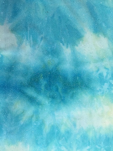 Priced per yard. Aqua/Teal Glitter, 60-inches wide. Smallest length sold online: one-yard.