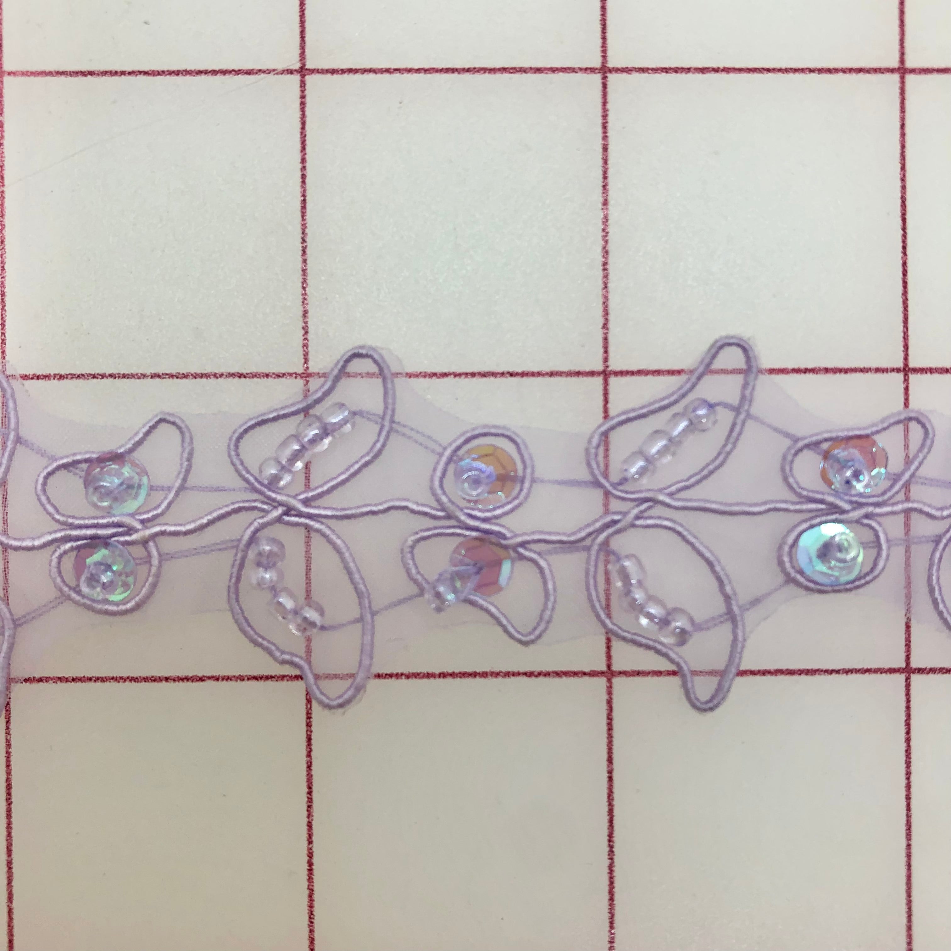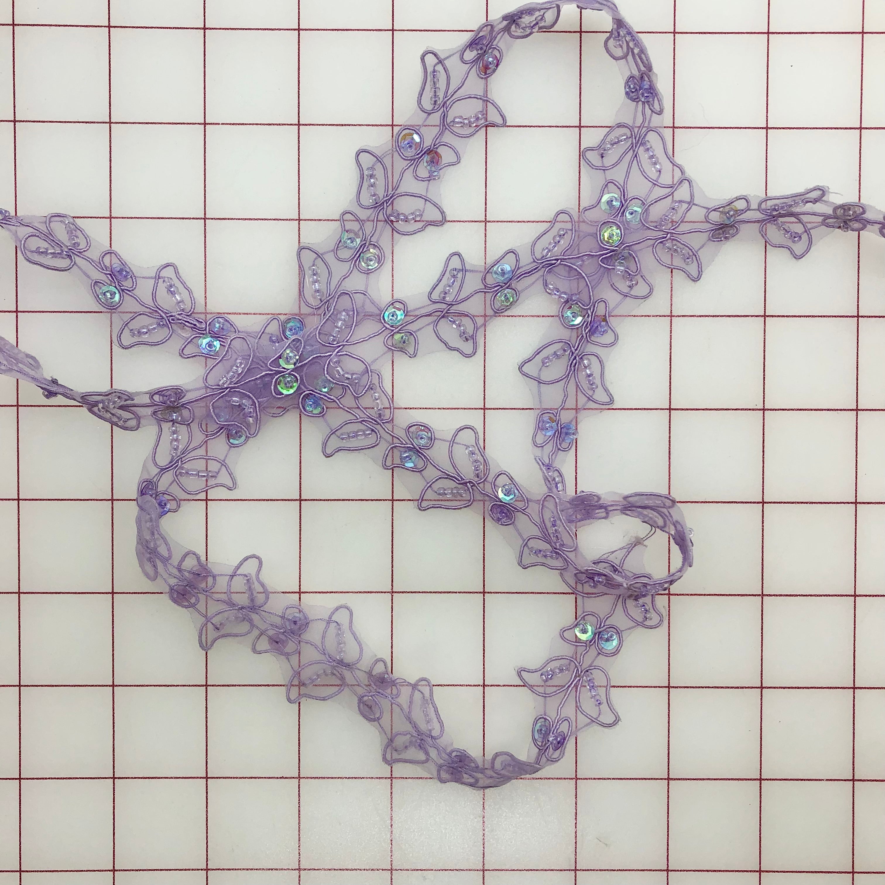 Priced per yard. Beautiful sequined trim. Lightweight, perfect for embellishing many costumes. Lavender, 1-inch wide.