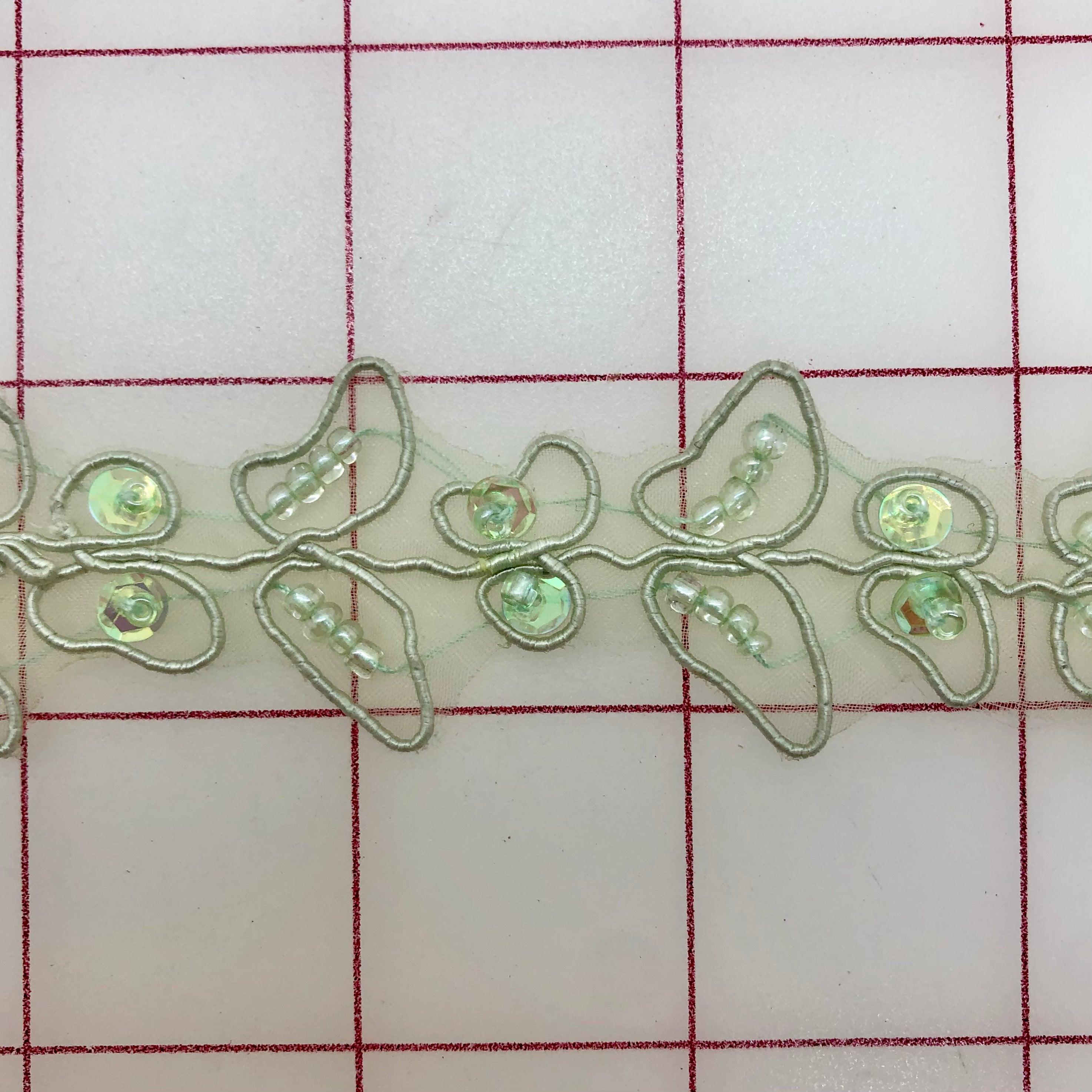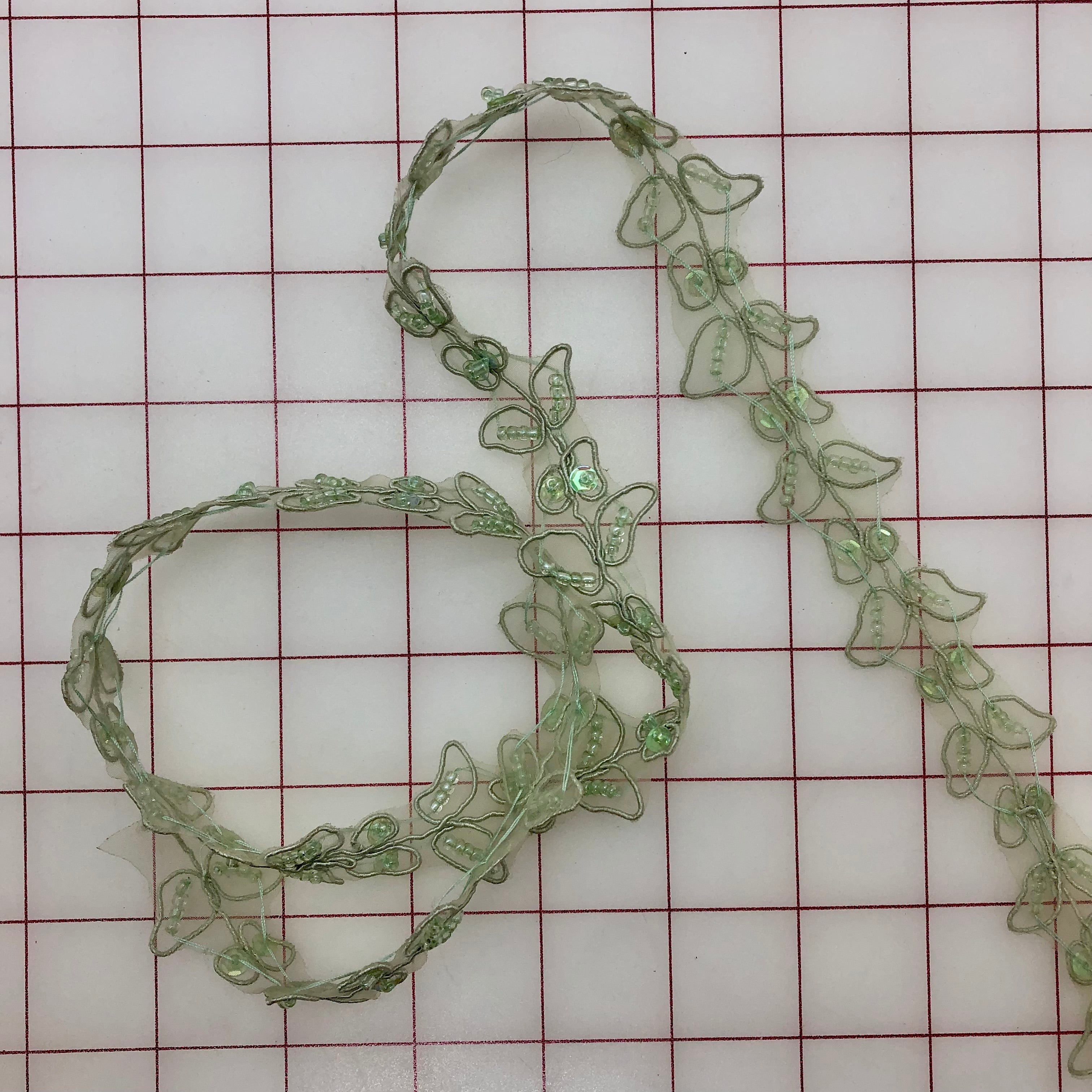 Priced per yard. Beautiful sequined trim. Lightweight, perfect for embellishing many costumes. Sage Green, 1-inch wide.