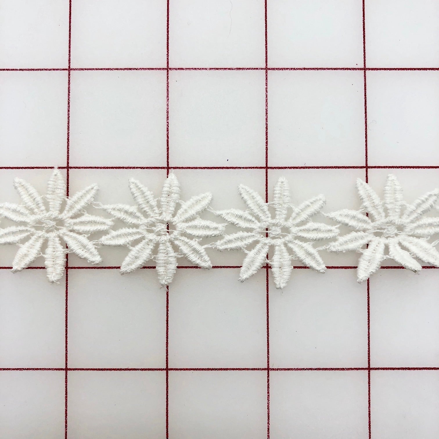 Priced per yard. Beautiful, white motif trim. 1-inch wide. Close-Out. 36 flower motifs per yard that can be easily cut apart and used to embellish headpieces, tutus and bodices, peasant-style costumes, and much more. Can be easily dyed many colors with Ri dyes. Cannot be re-ordered. There is just so much you can do with this trim!