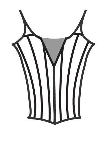 Inspired by New York City Ballet's Dewdrop from The Nutcracker, we've lengthened the line, re-designed the back, and added elasticized cording at the top edge for ease of fit, to make it our own. This pattern is a long-line, all-in-one bodice/basque that can be stitched directly over the top layer of the skirt. It can be made with or without a center front nude inset and with or without petaled edges. This bodice looks fabulous with Classic and Romantic tutus. Although available in a limited number of sizes, with this many pieces, it's very easy to adjust the pattern - just select the closest size.