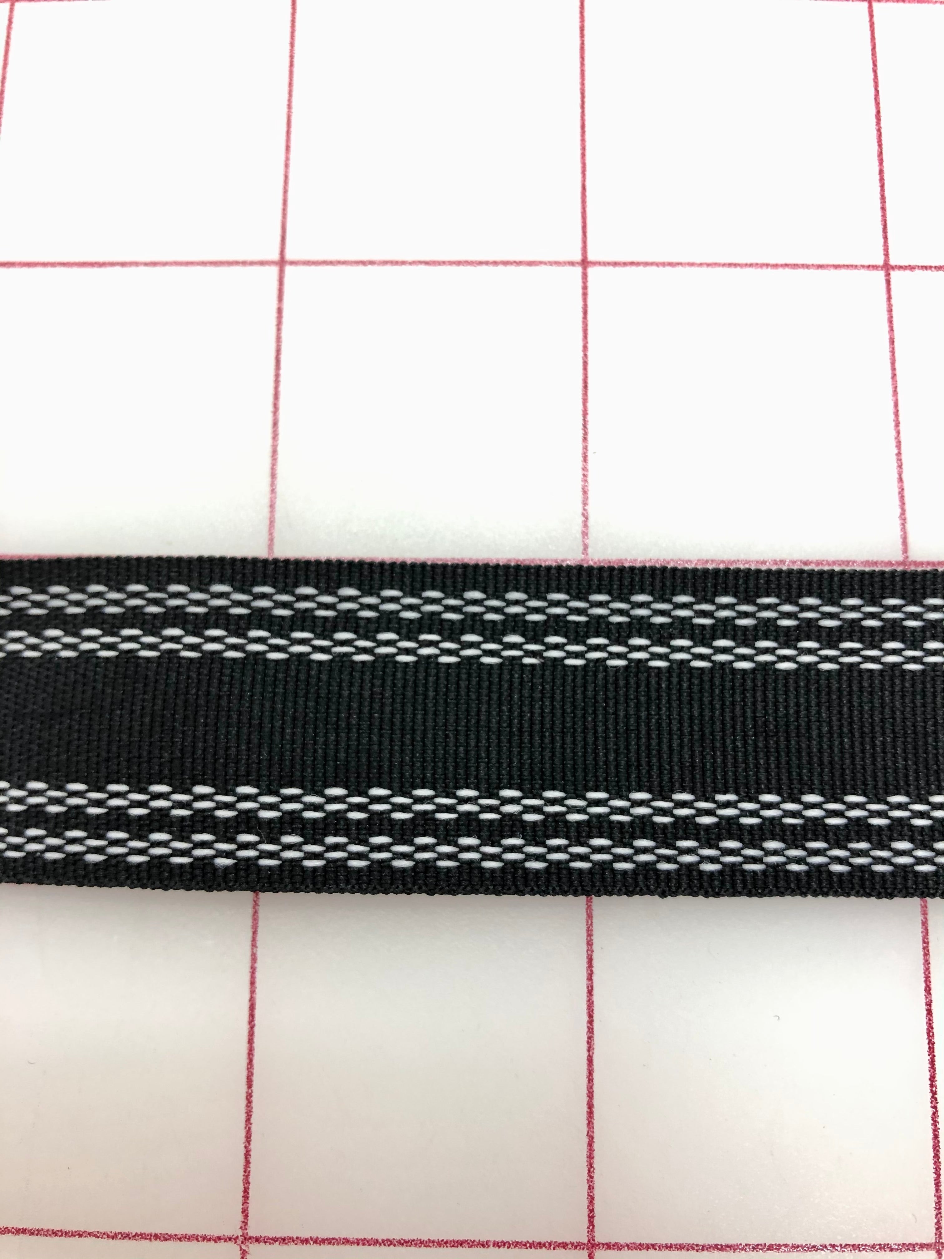 Priced per yard. 1-inch wide black hard Petersham waistband.