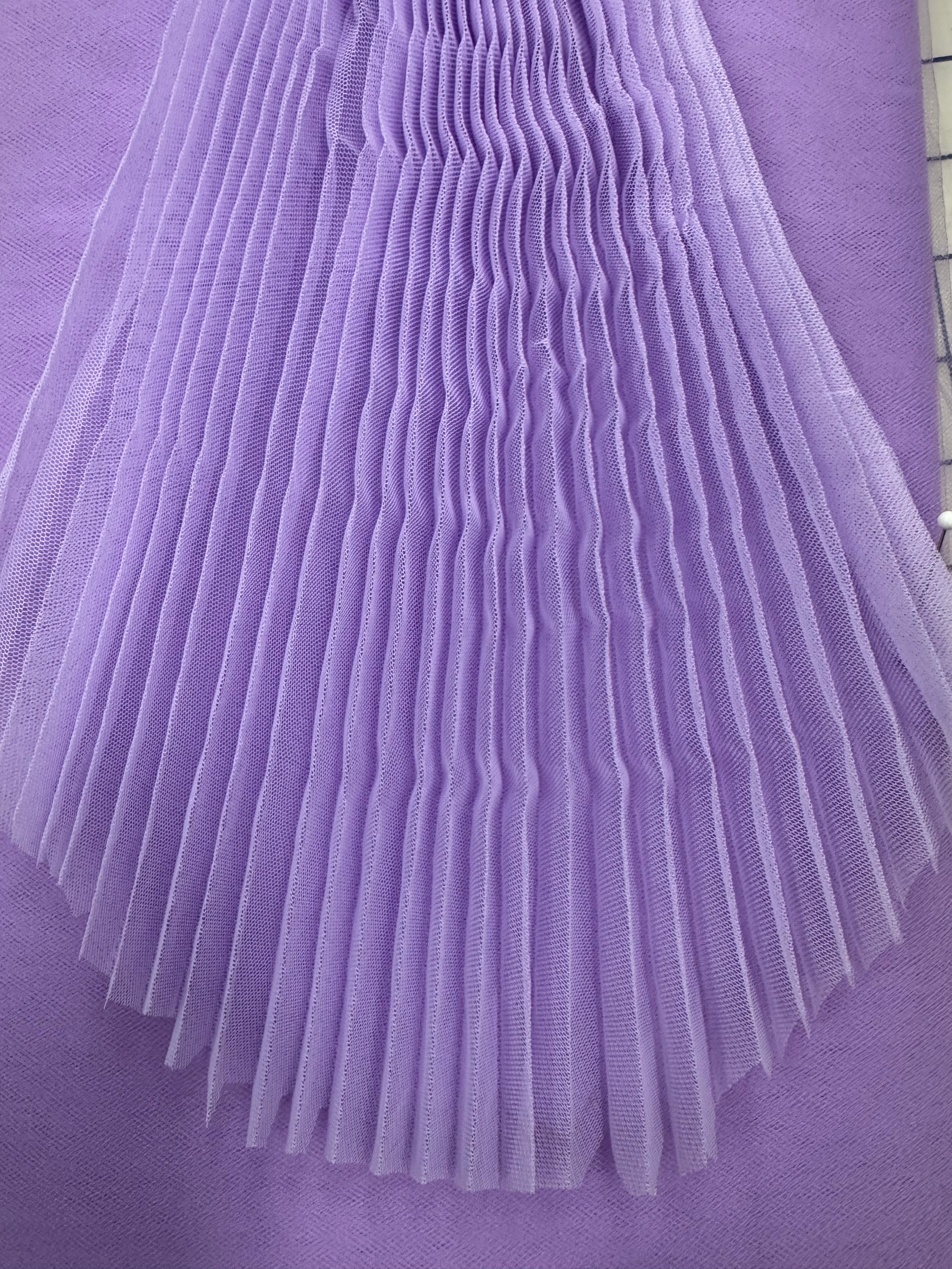 Priced per yard. Pleated Lilac Tutu Tulle. 100% polyester.