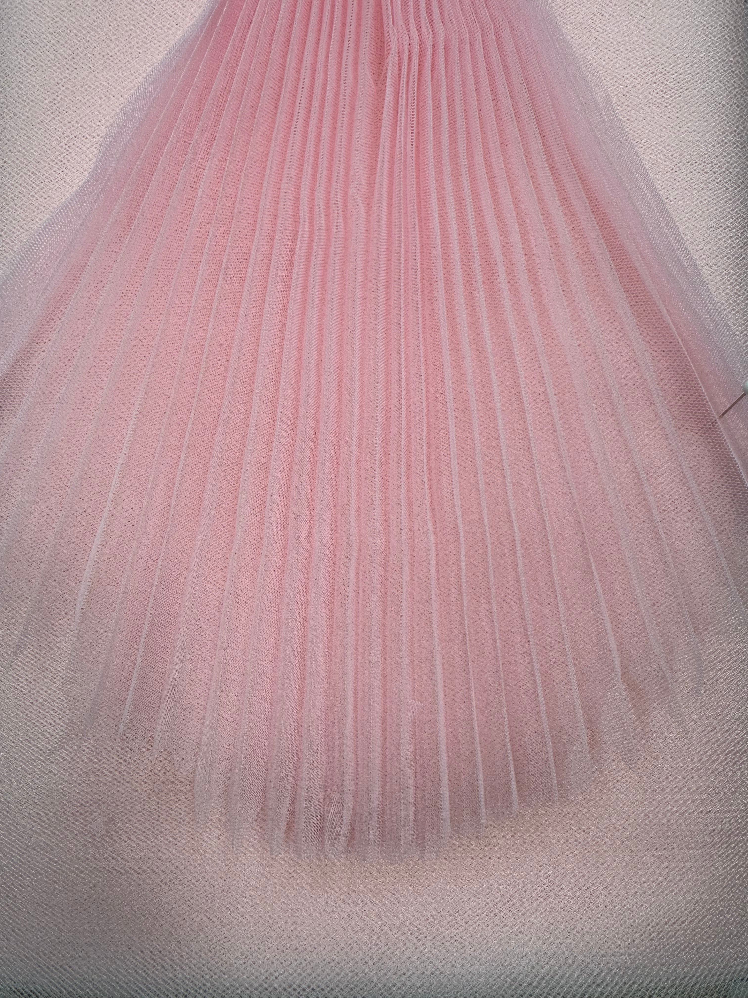 Priced per yard. Pleated Pink Tutu Tulle. 100% polyester.