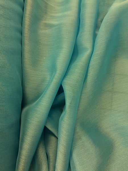 Priced per yard. Aqua polyester two-toned chiffon. 59/60-inches wide.